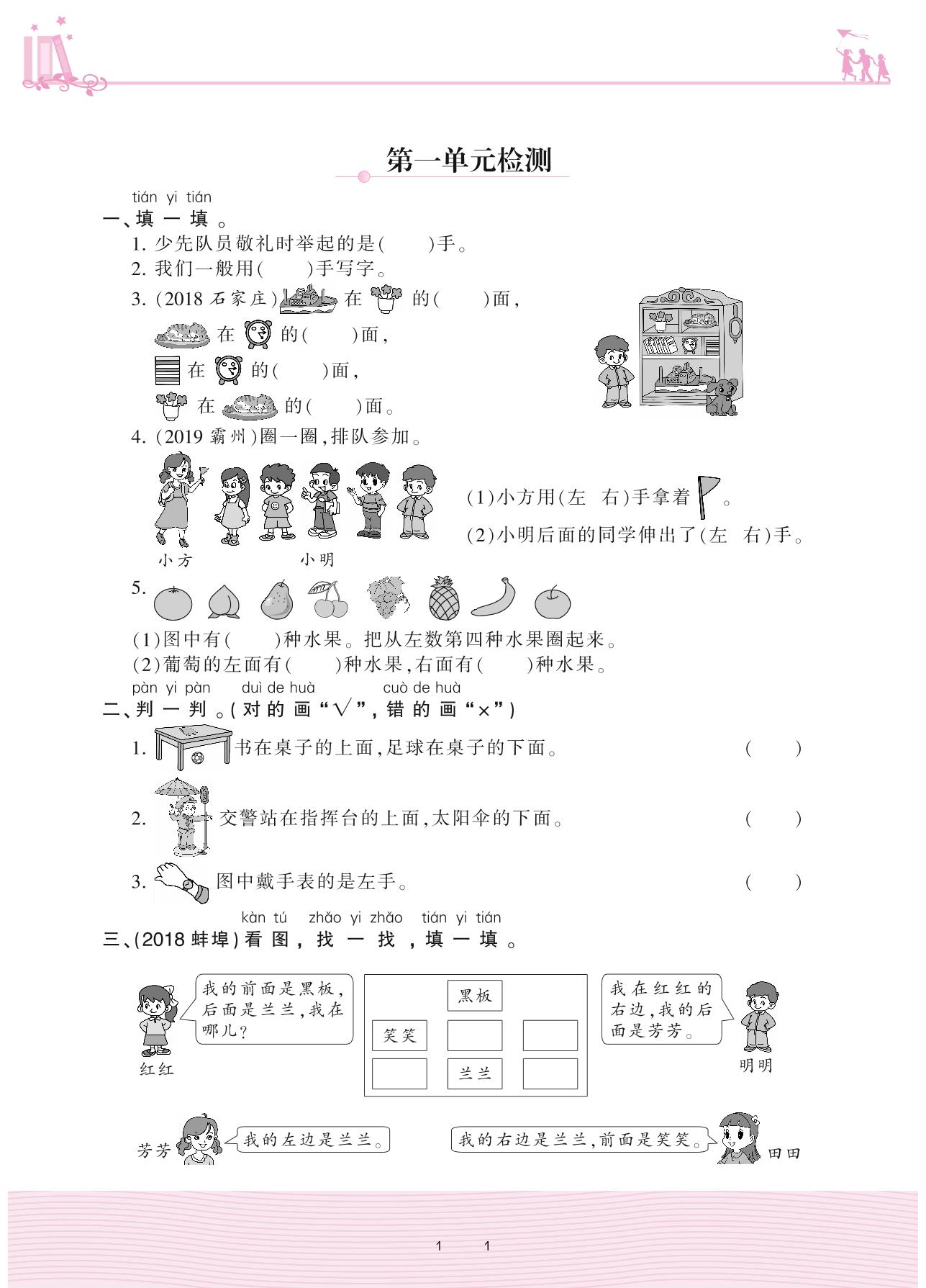 2021下册一年级数学冀教版 一 位置——第一单元检测