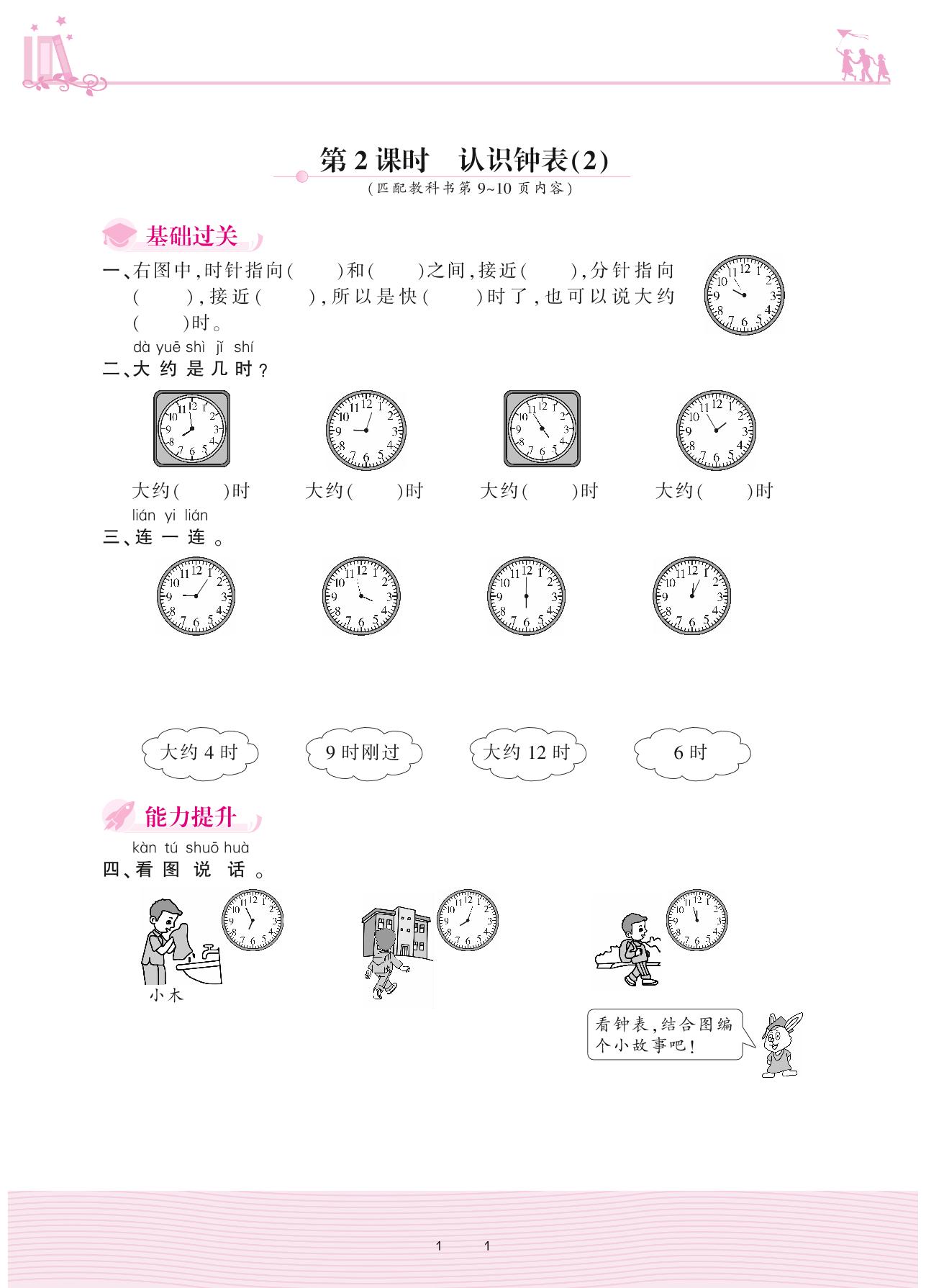 2021下册一年级数学冀教版 二 认识钟表——第2课时 认识钟表(2)
