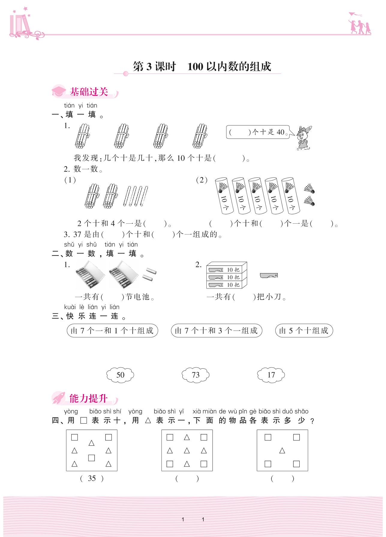 2021下册一年级数学冀教版 三 100以内数的认识——第3课时 100以内数的组成