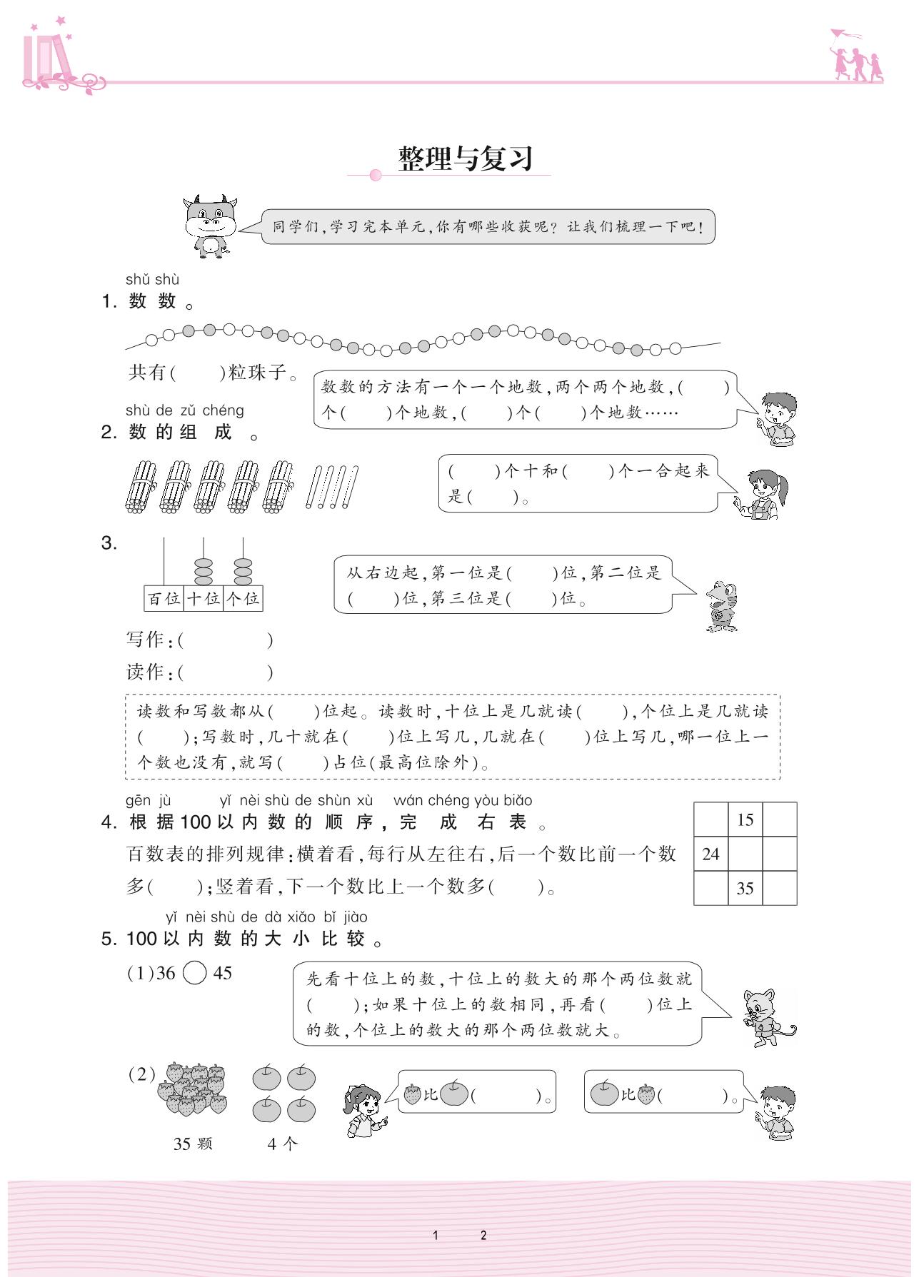2021下册一年级数学冀教版 三 100以内数的认识——整理与复习