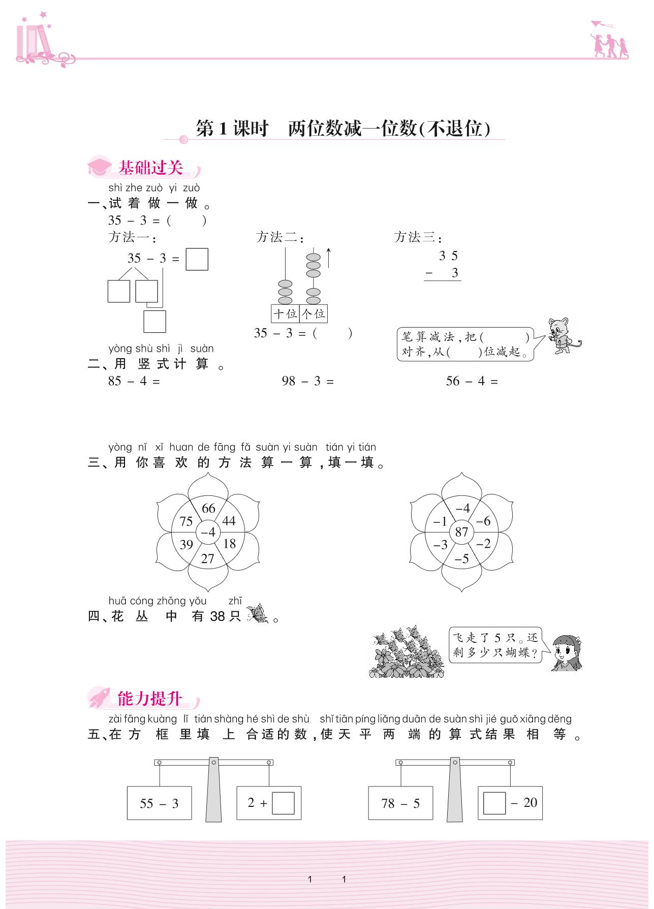 2021下册一年级数学冀教版 五 100以内的加法和减法(一) 4. 两位数减一位数——第1课时 两位数减一位数(不退位)