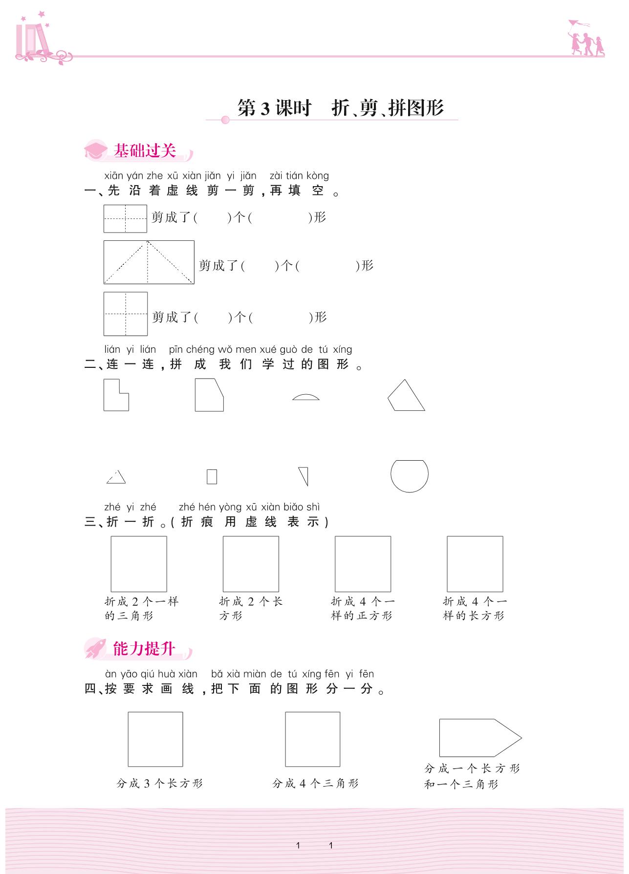 2021下册一年级数学冀教版 六 认识图形(二)——第3课时 折、剪、拼图形