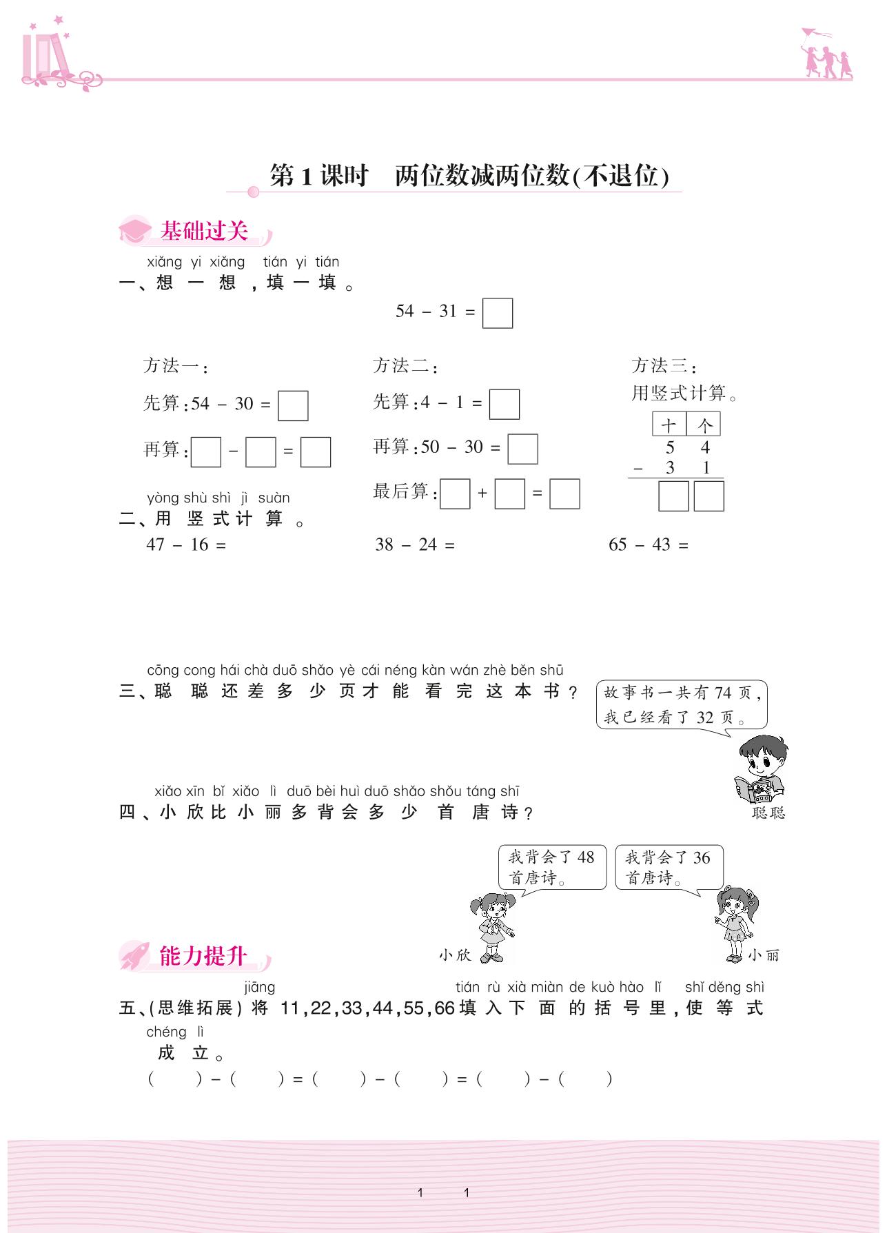 2021下册一年级数学冀教版 七 100以内的加法和减法(二) 2. 两位数减两位数——第1课时 两位数减两位数(不退位)