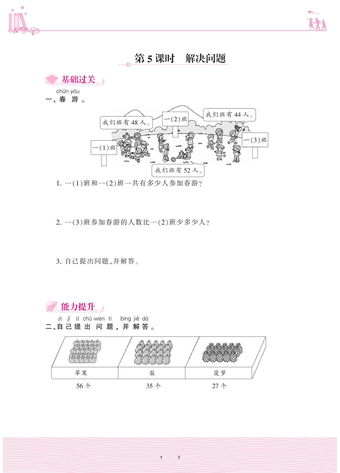2021下册一年级数学冀教版 七 100以内的加法和减法(二) 2. 两位数减两位数——第5课时 解决问题