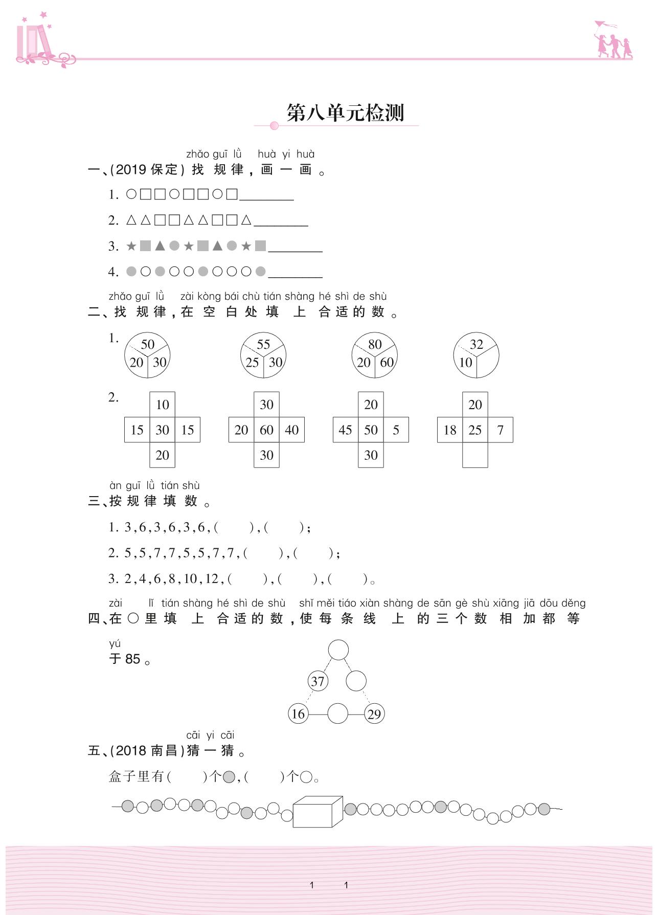 2021下册一年级数学冀教版 八 探索乐园——第八单元检测
