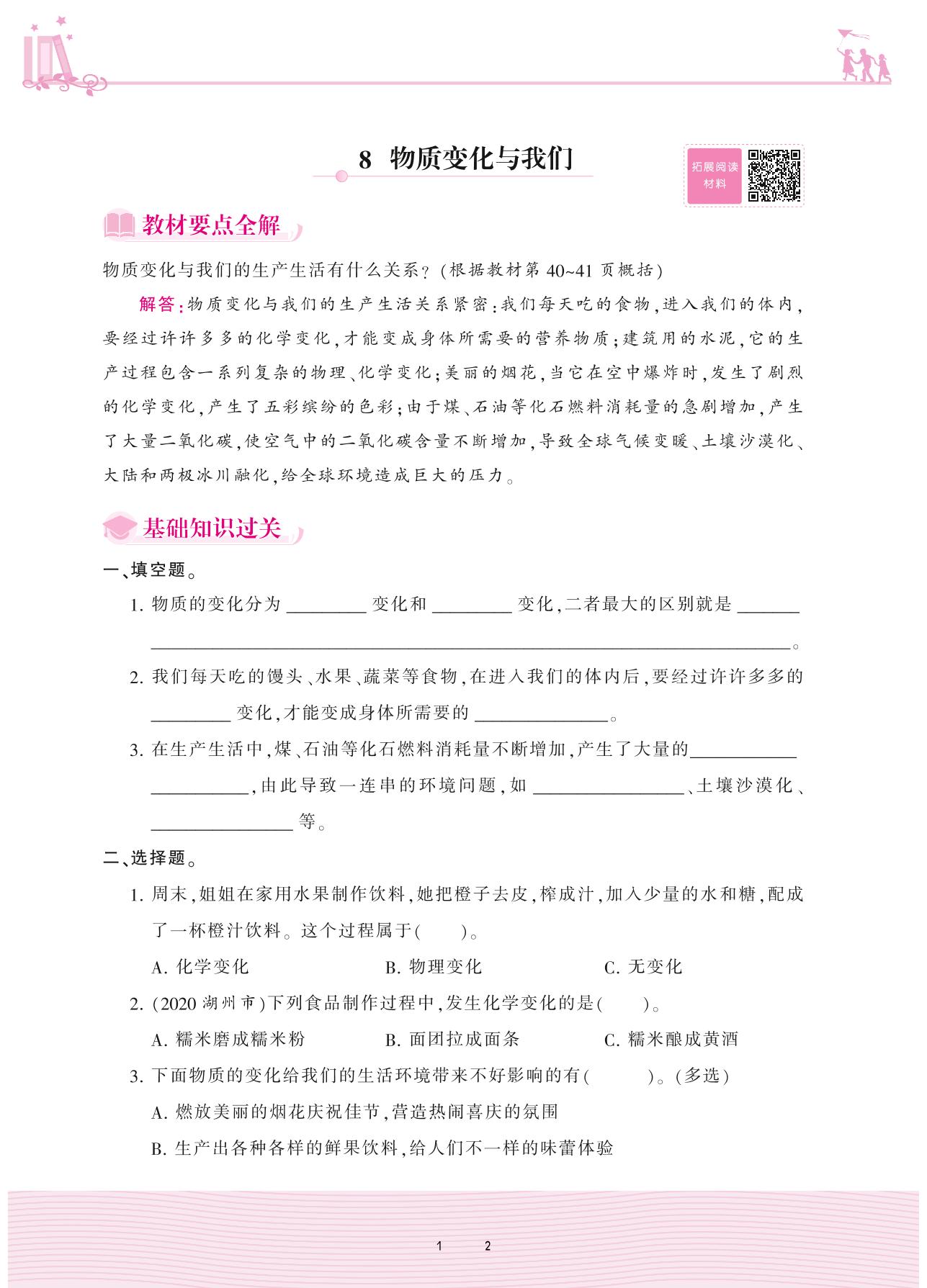 2021下册六年级科学教科版 第二单元 物质的变化——8 物质变化与我们
