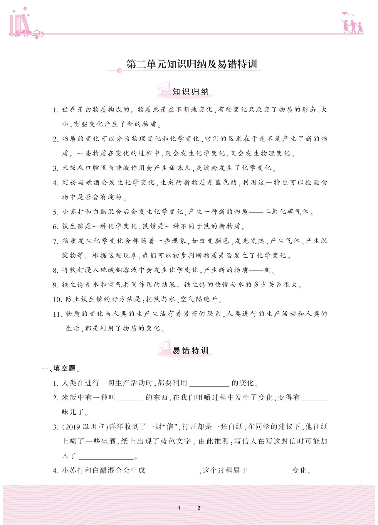 2021下册六年级科学教科版 第二单元 物质的变化——第二单元知识归纳及易错特训