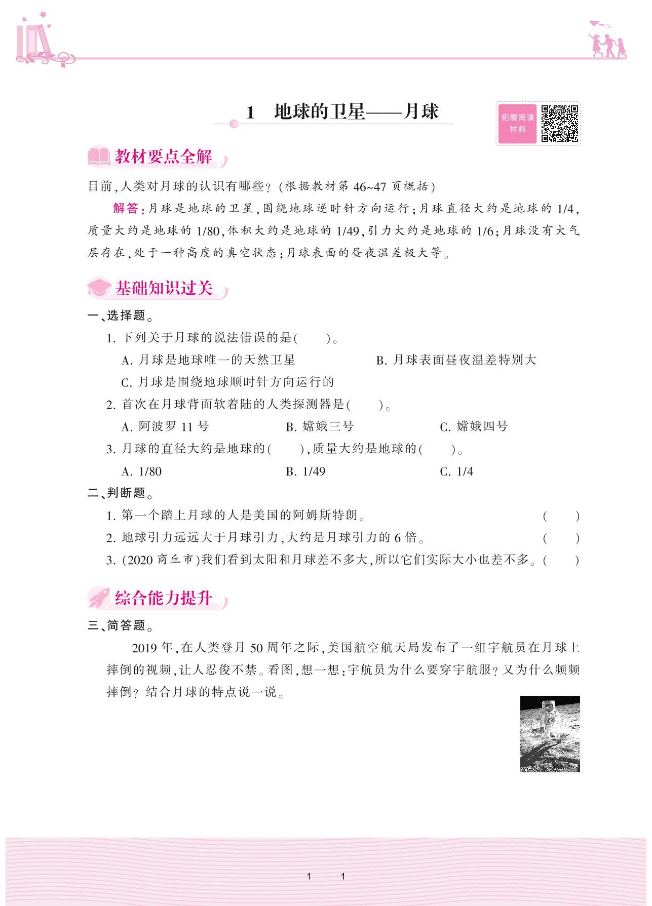 2021下册六年级科学教科版 第三单元 宇宙——1 地球的卫星——月球