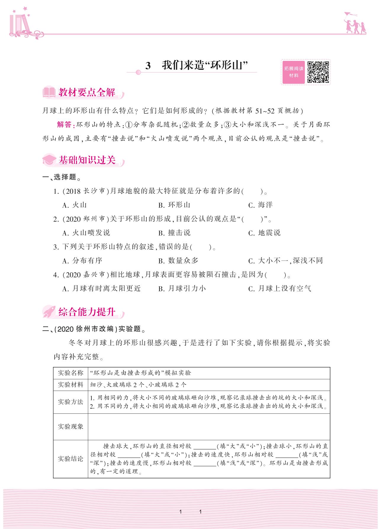 2021下册六年级科学教科版 第三单元 宇宙——3 我们来造“环形山”