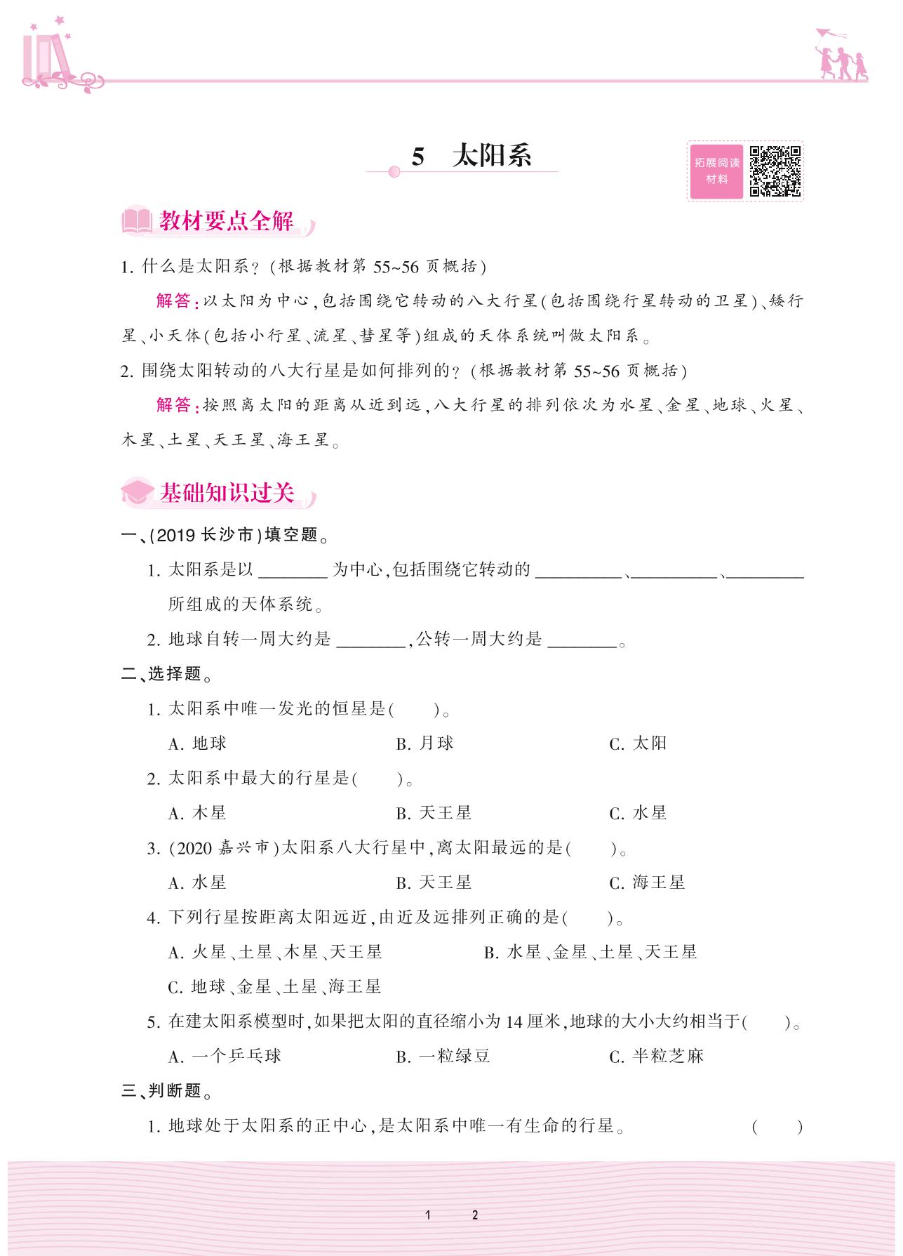 2021下册六年级科学教科版 第三单元 宇宙——5 太阳系
