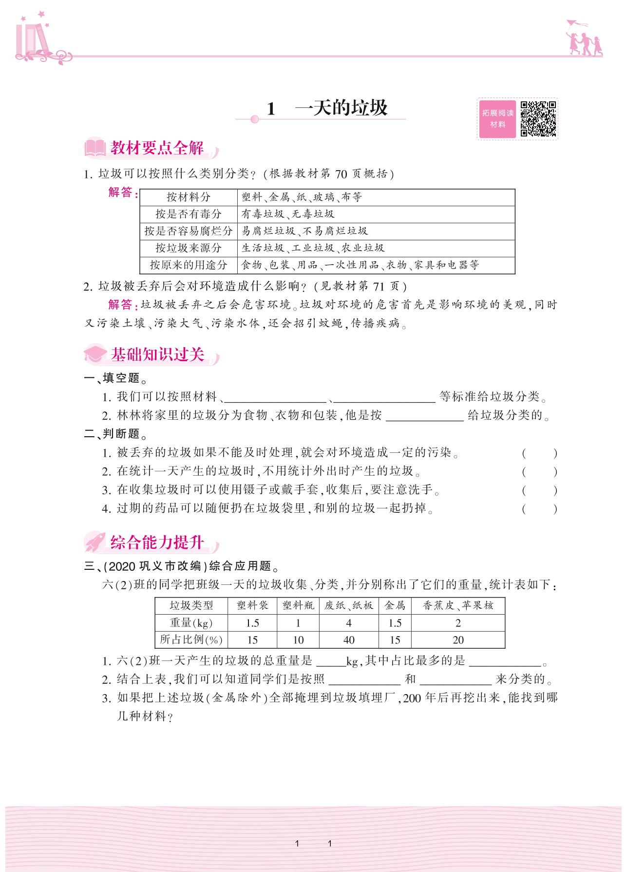 2021下册六年级科学教科版 第四单元 环境和我们——1 一天的垃圾