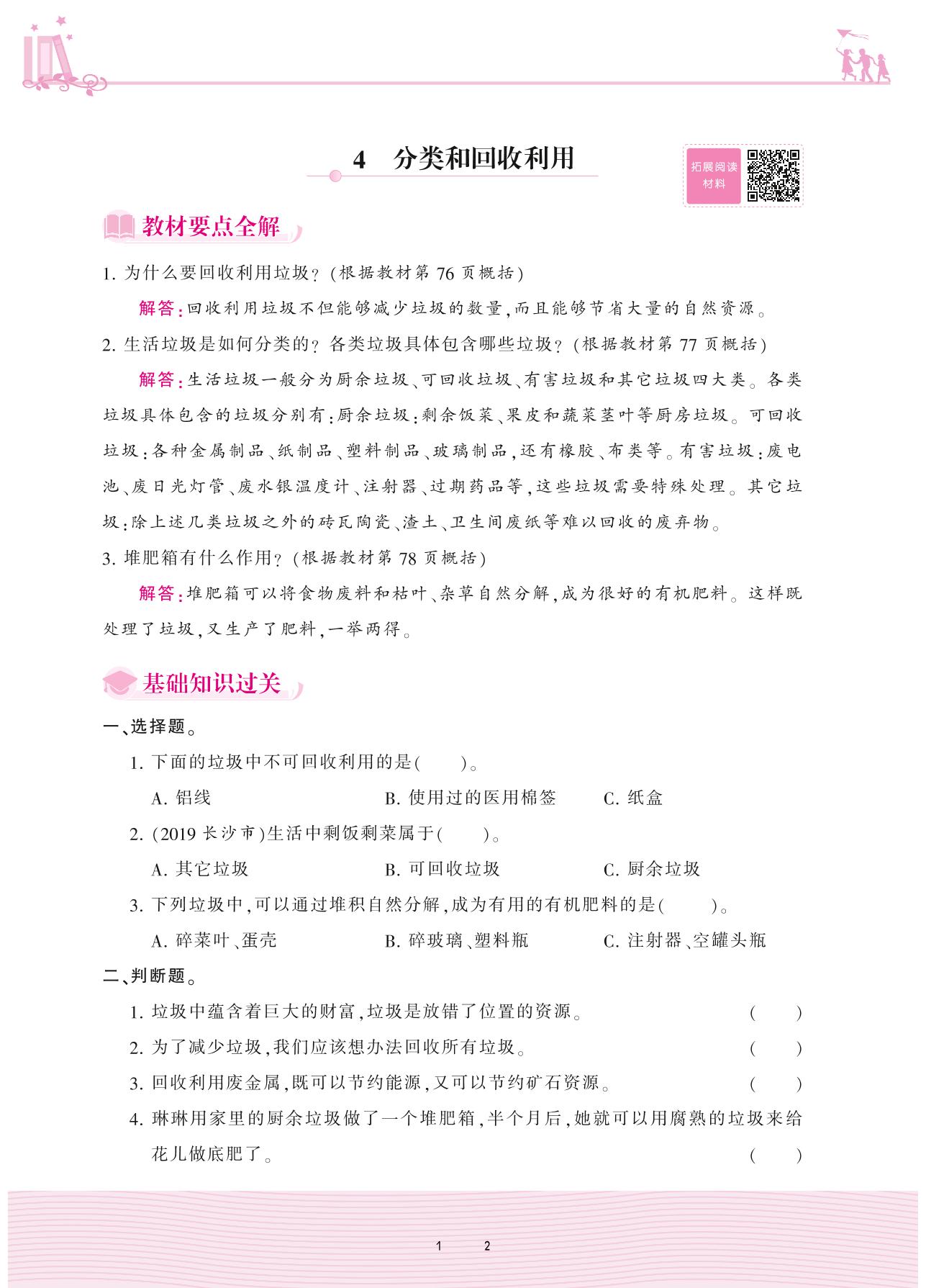2021下册六年级科学教科版 第四单元 环境和我们——4 分类和回收利用
