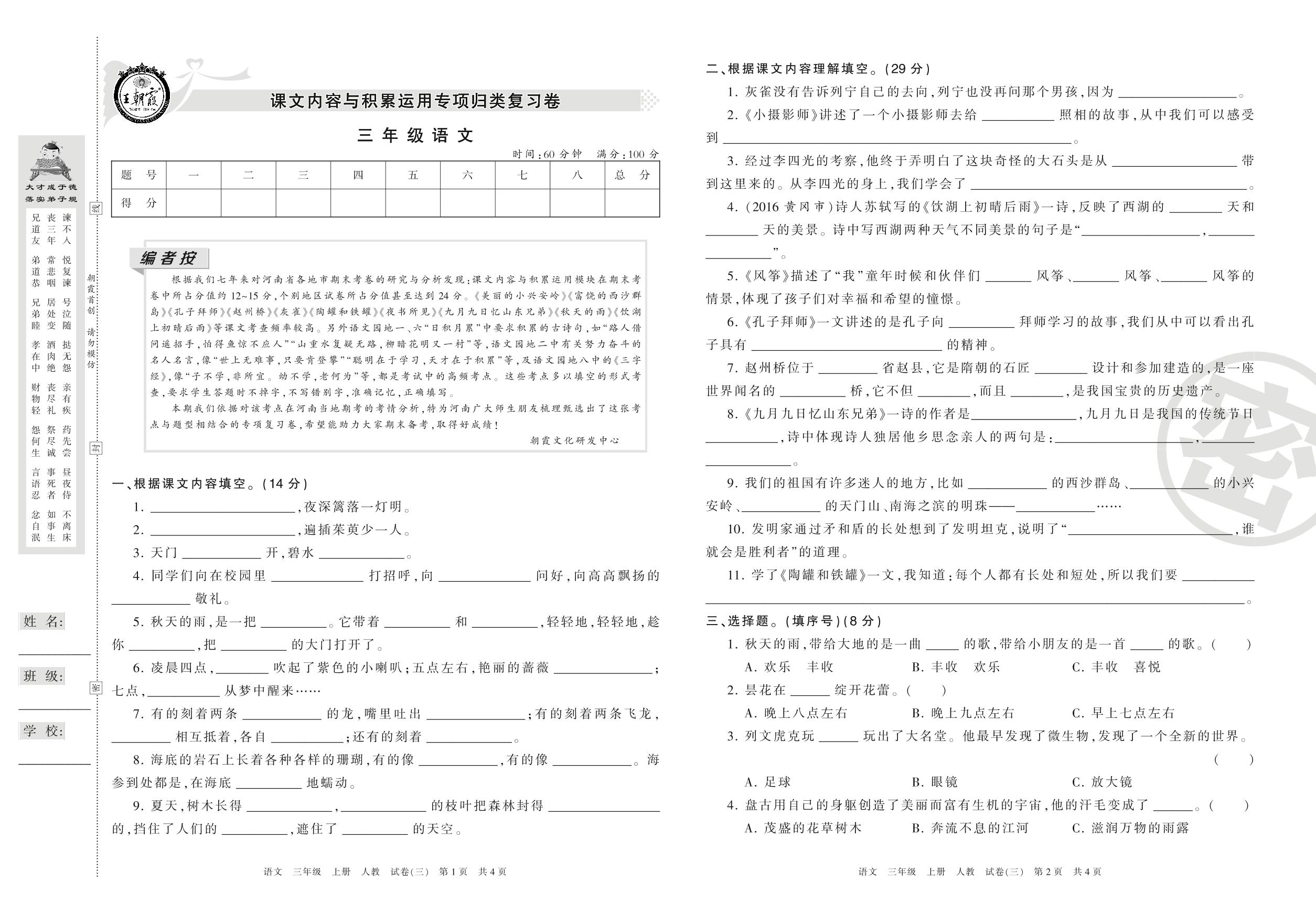 王朝霞期末专项卷三年级上册语文(人教版)_R210801100319【3】