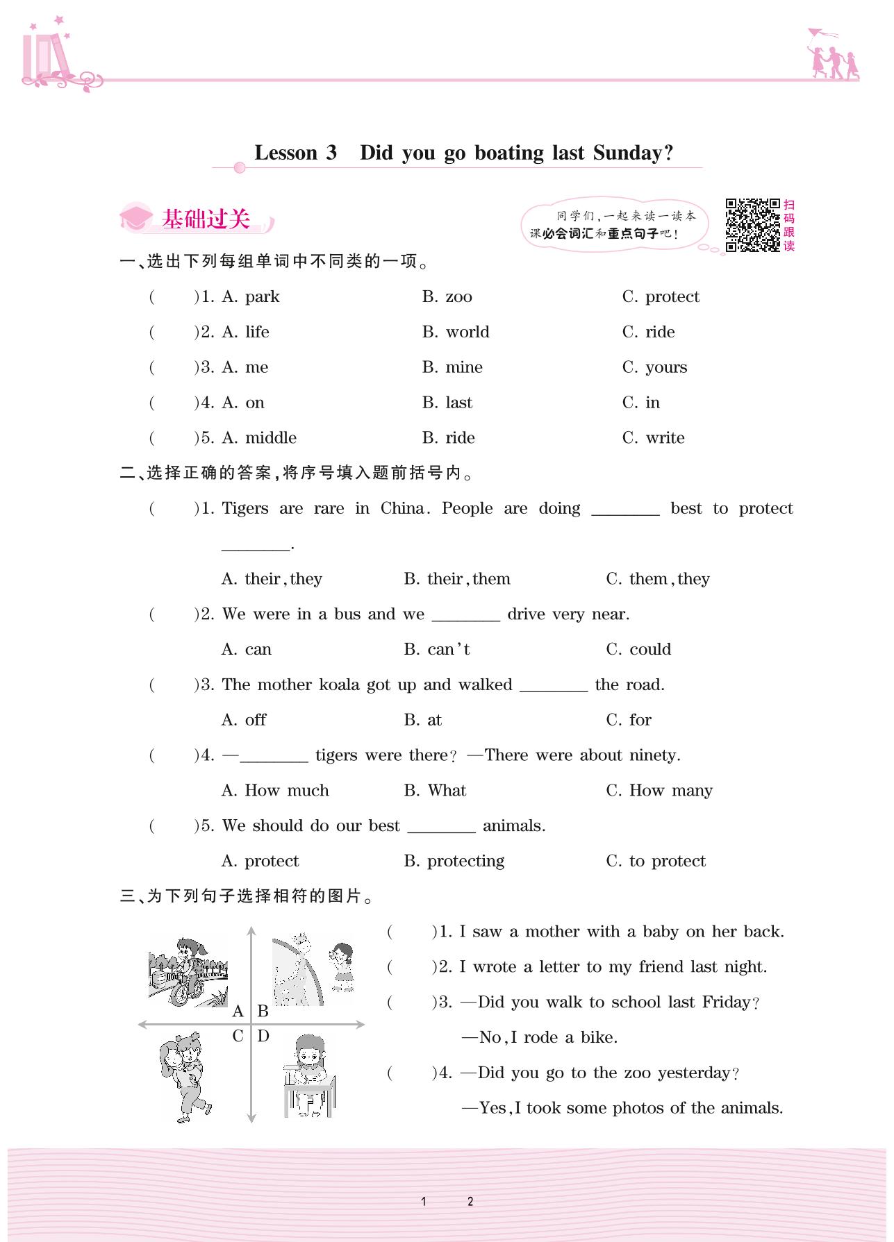 2021下册六年级英语科普版 Lesson 3 Did you go boating last Sunday?