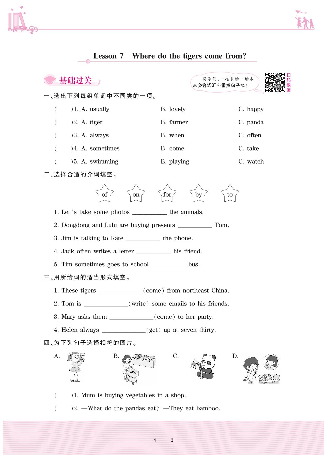 2021下册六年级英语科普版 Lesson 7 Where do the tigers come from?