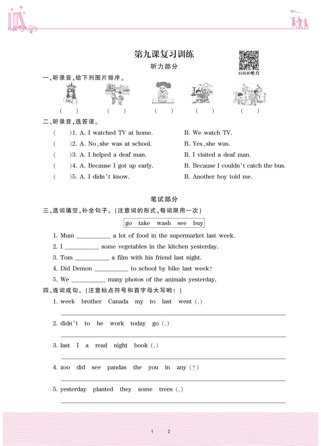 2021下册六年级英语科普版 第九课复习训练