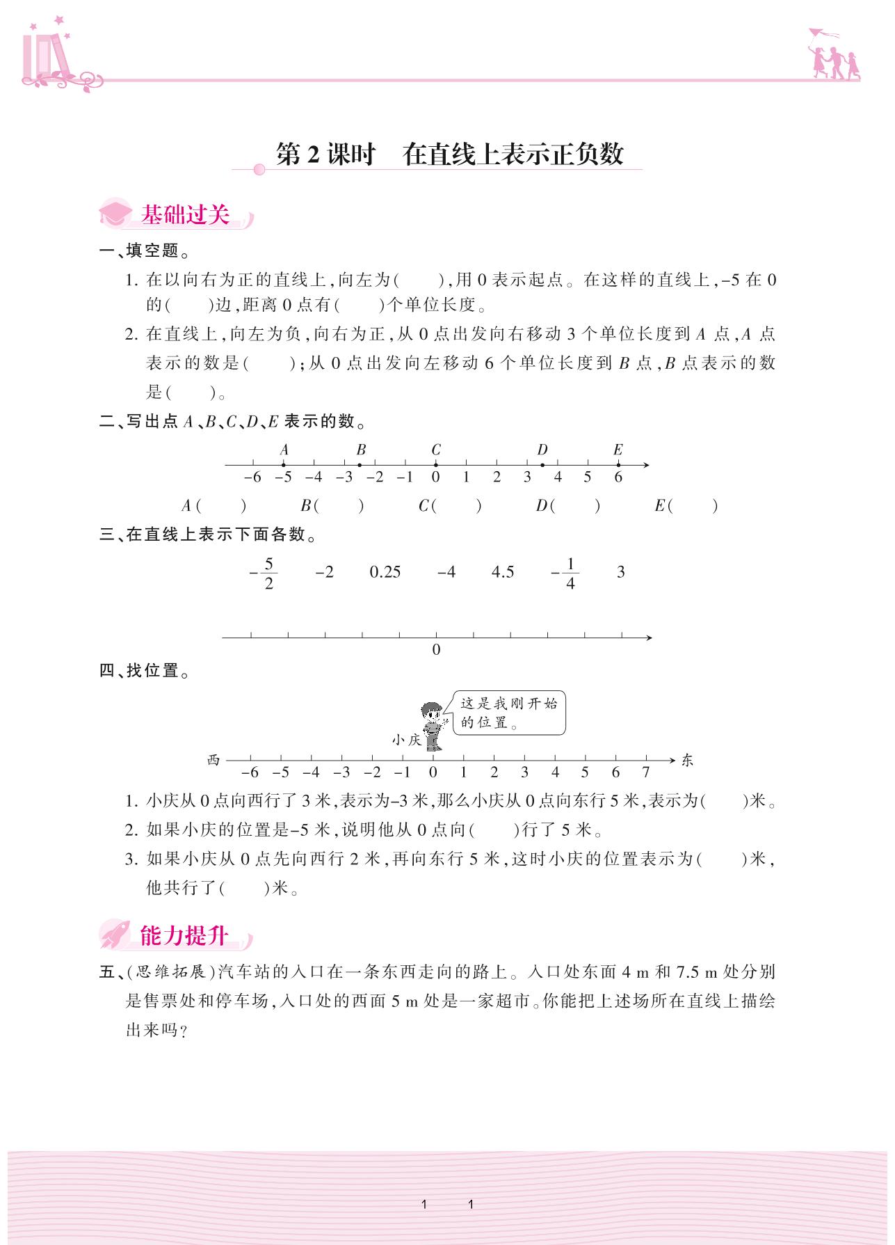 2021下册六年级数学人教版 1 负数——第2课时 在直线上表示正负数