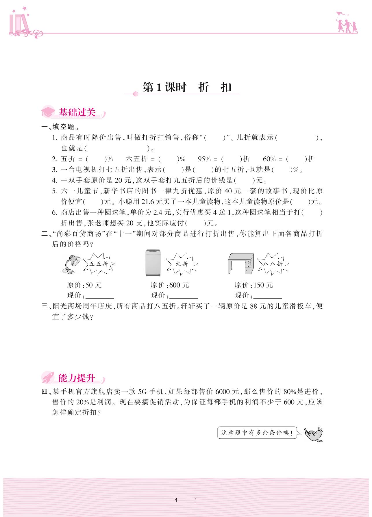 2021下册六年级数学人教版 2 百分数(二)——第1课时 折扣