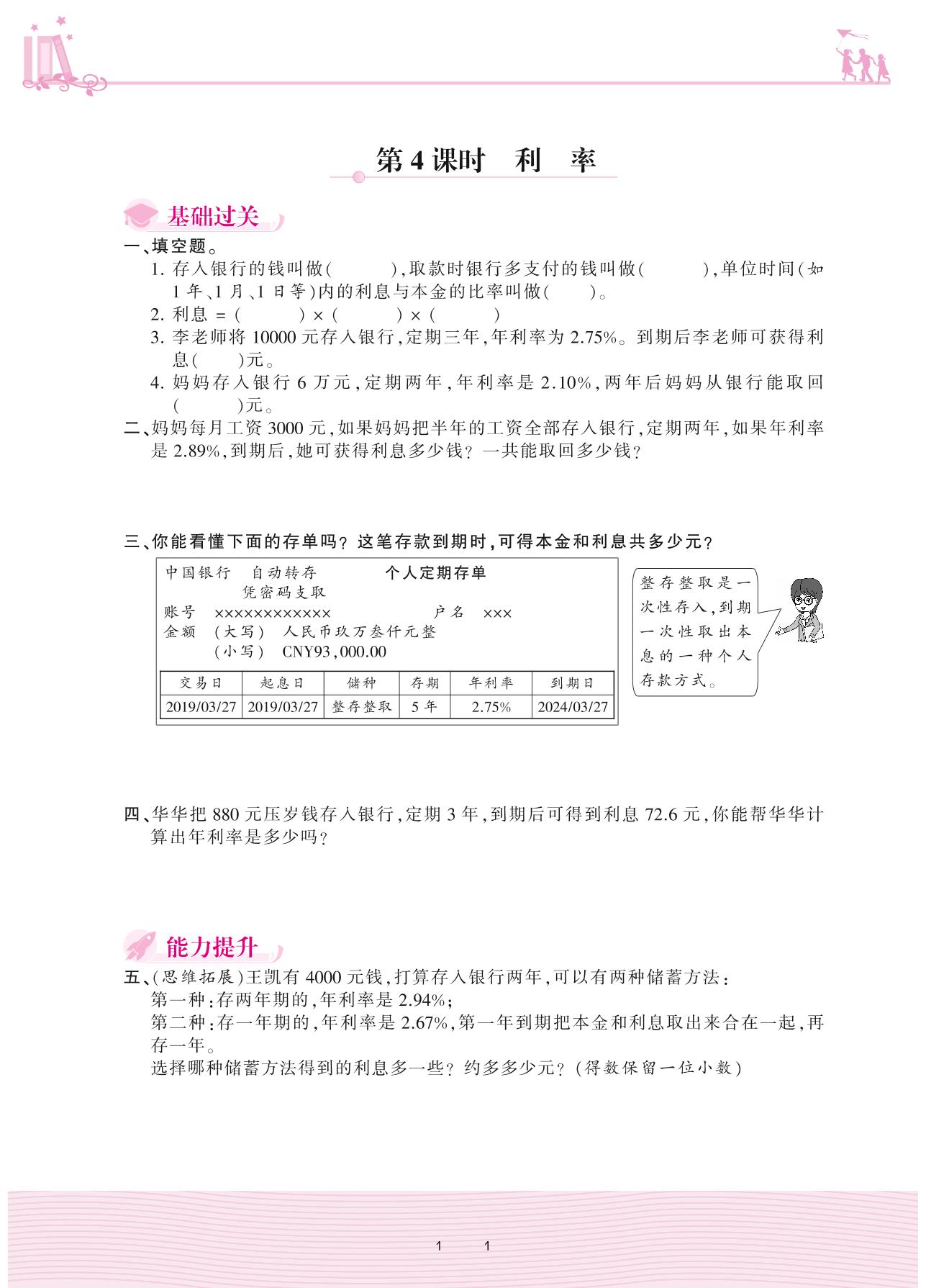 2021下册六年级数学人教版 2 百分数(二)——第4课时 利率