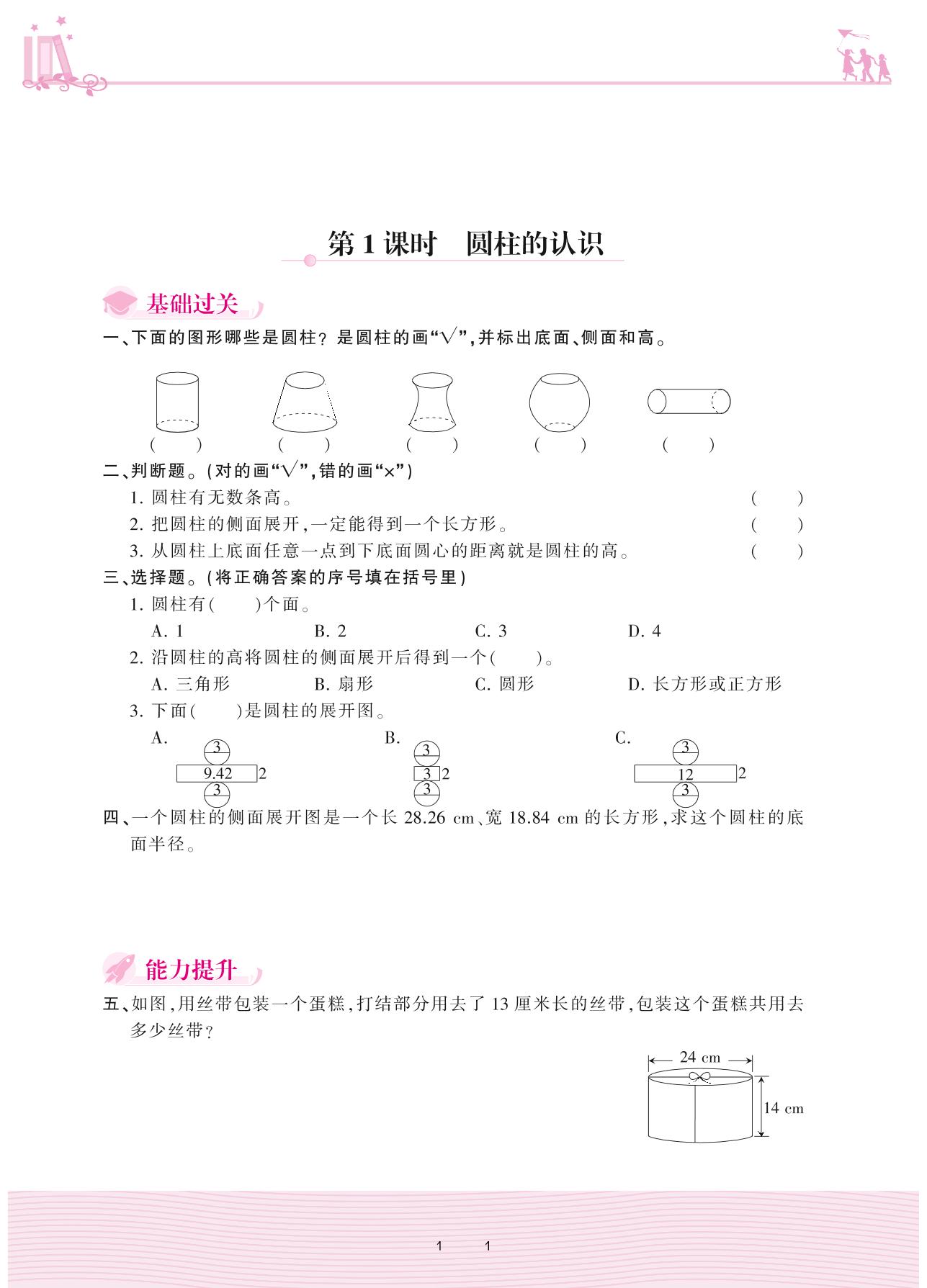 2021下册六年级数学人教版 3 圆柱与圆锥 1. 圆柱——第1课时 圆柱的认识
