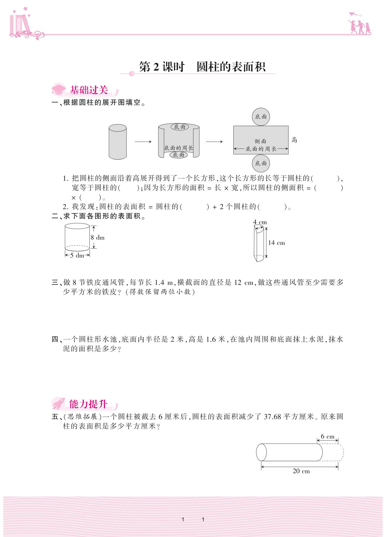 2021下册六年级数学人教版 3 圆柱与圆锥 1. 圆柱——第2课时 圆柱的表面积