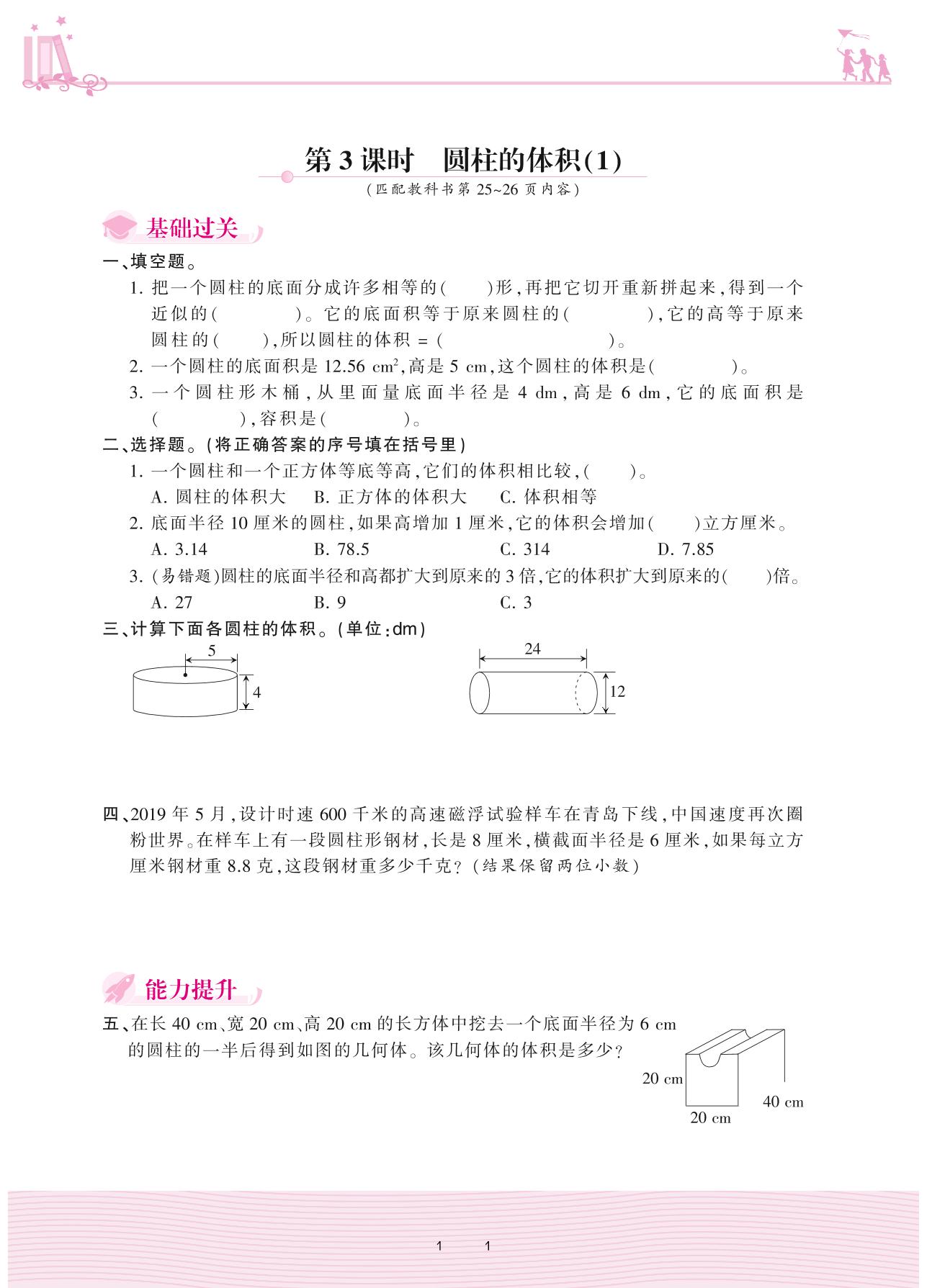 2021下册六年级数学人教版 3 圆柱与圆锥 1. 圆柱——第3课时 圆柱的体积(1)