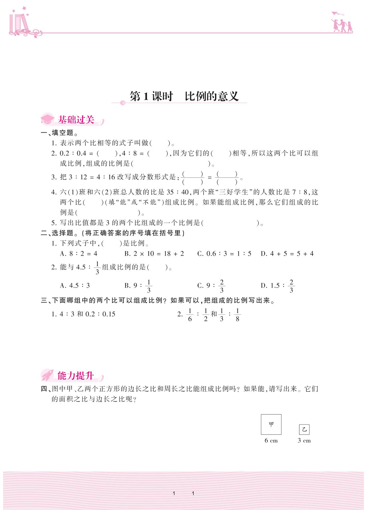 2021下册六年级数学人教版 4 比例 1. 比例的意义和基本性质——第1课时 比例的意义