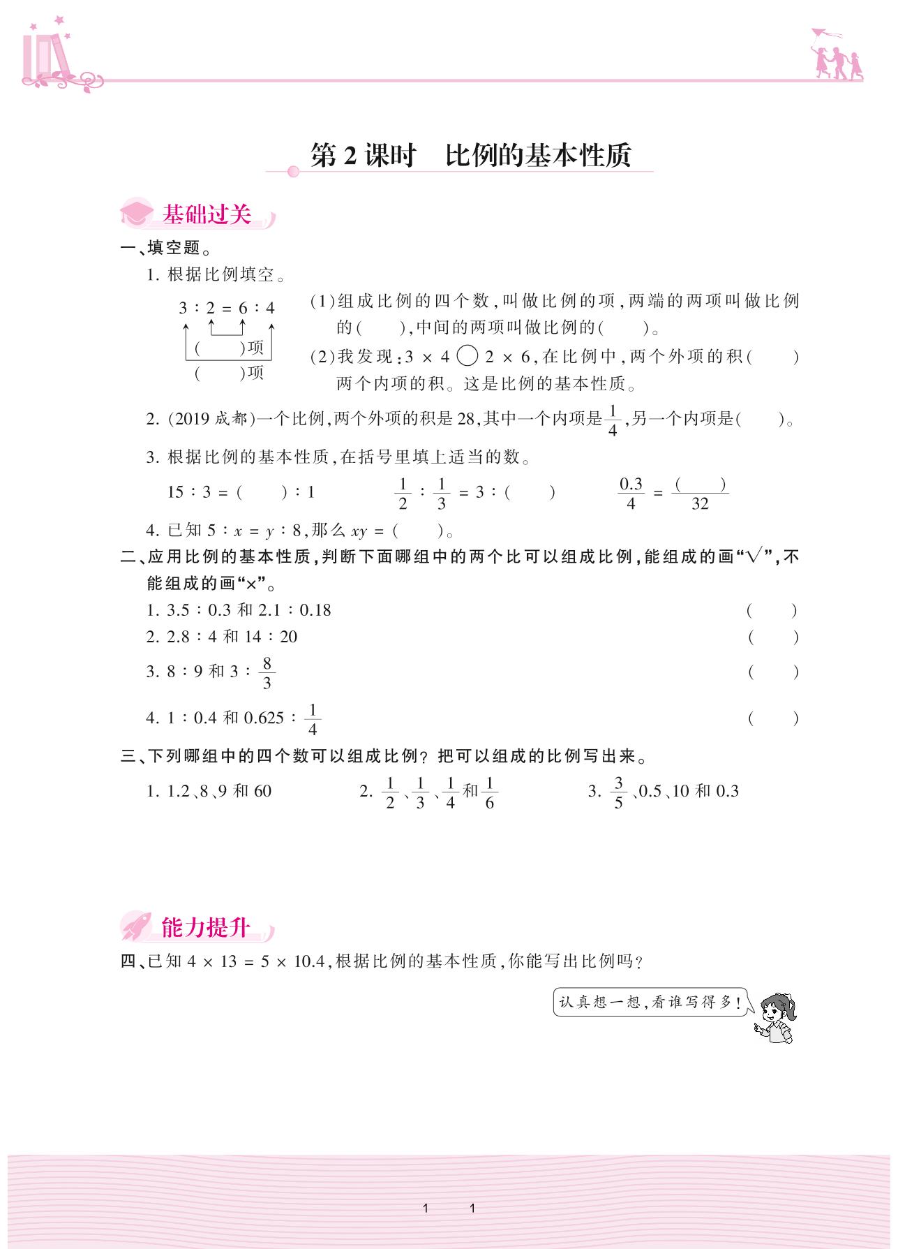 2021下册六年级数学人教版 4 比例 1. 比例的意义和基本性质——第2课时 比例的基本性质