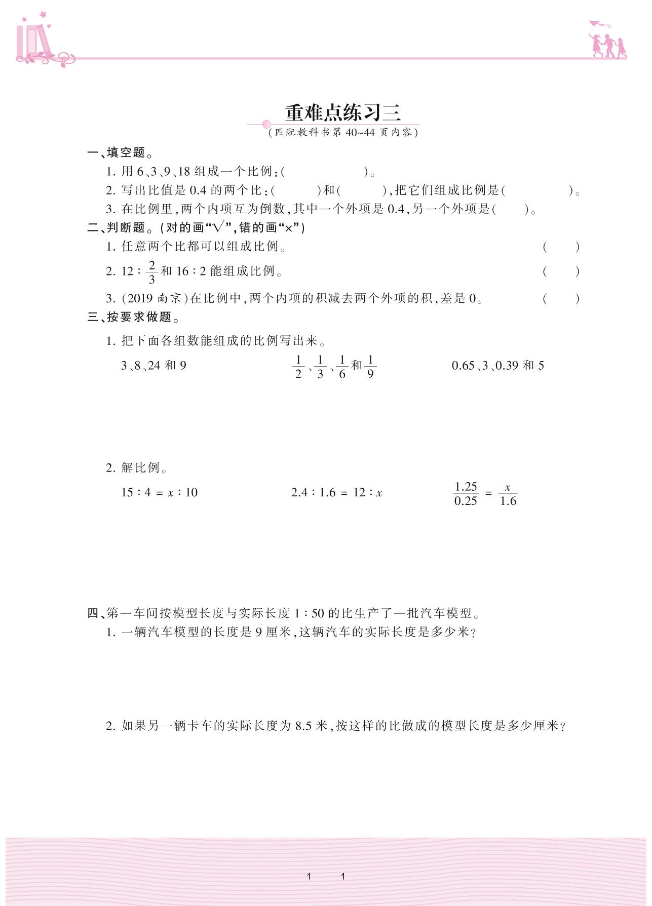 2021下册六年级数学人教版 4 比例——重难点练习三