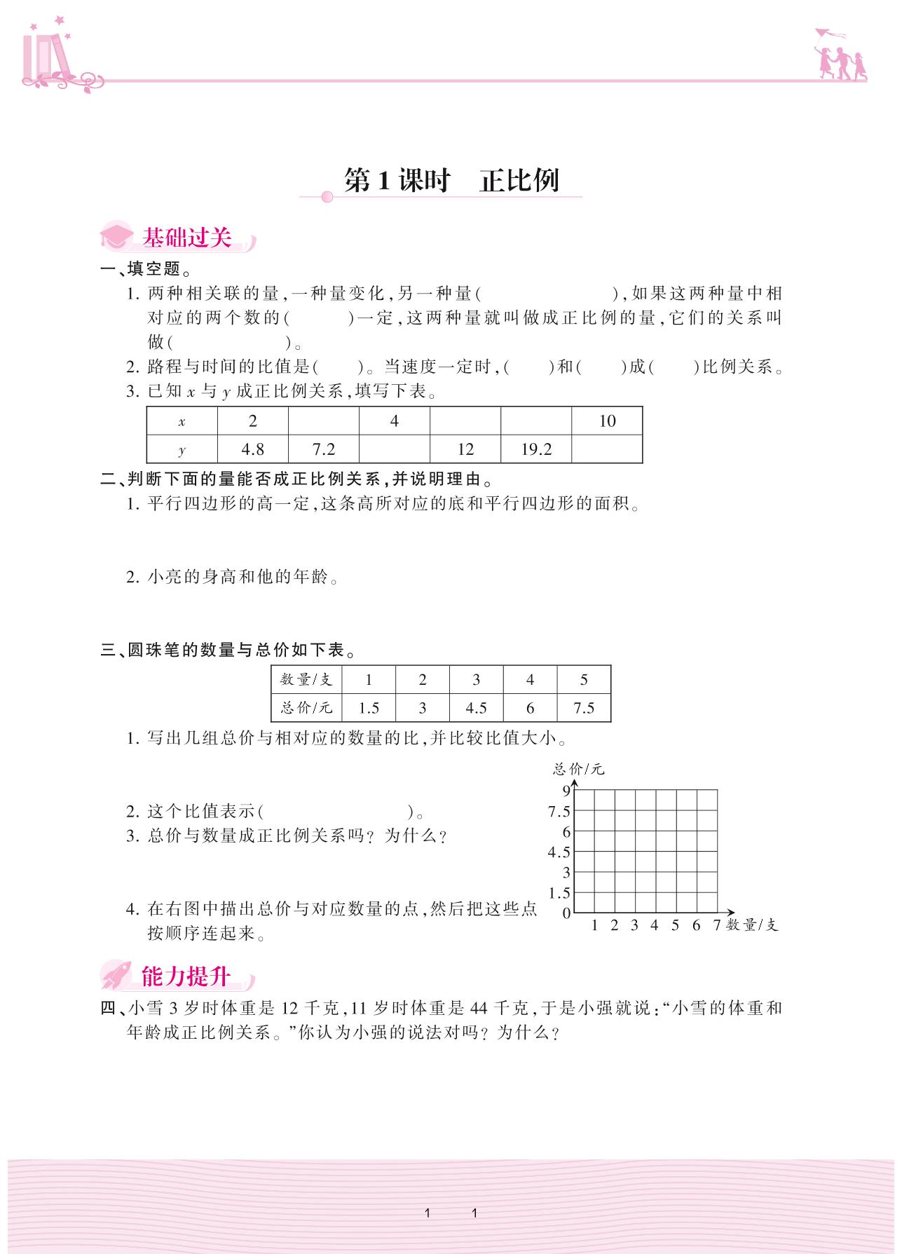 2021下册六年级数学人教版 4 比例 2. 正比例和反比例——第1课时 正比例