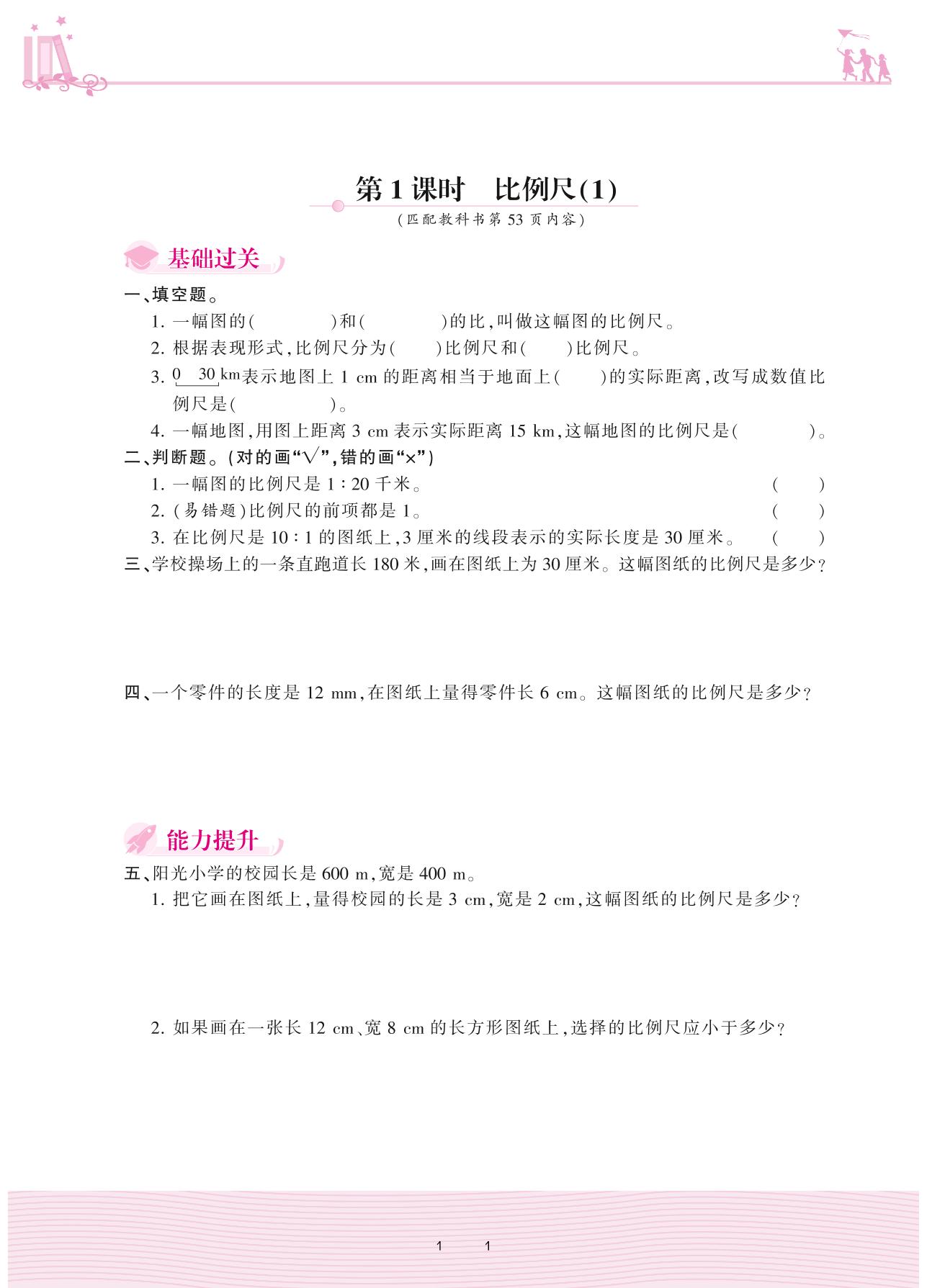 2021下册六年级数学人教版 4 比例 3. 比例的应用——第1课时 比例尺(1)