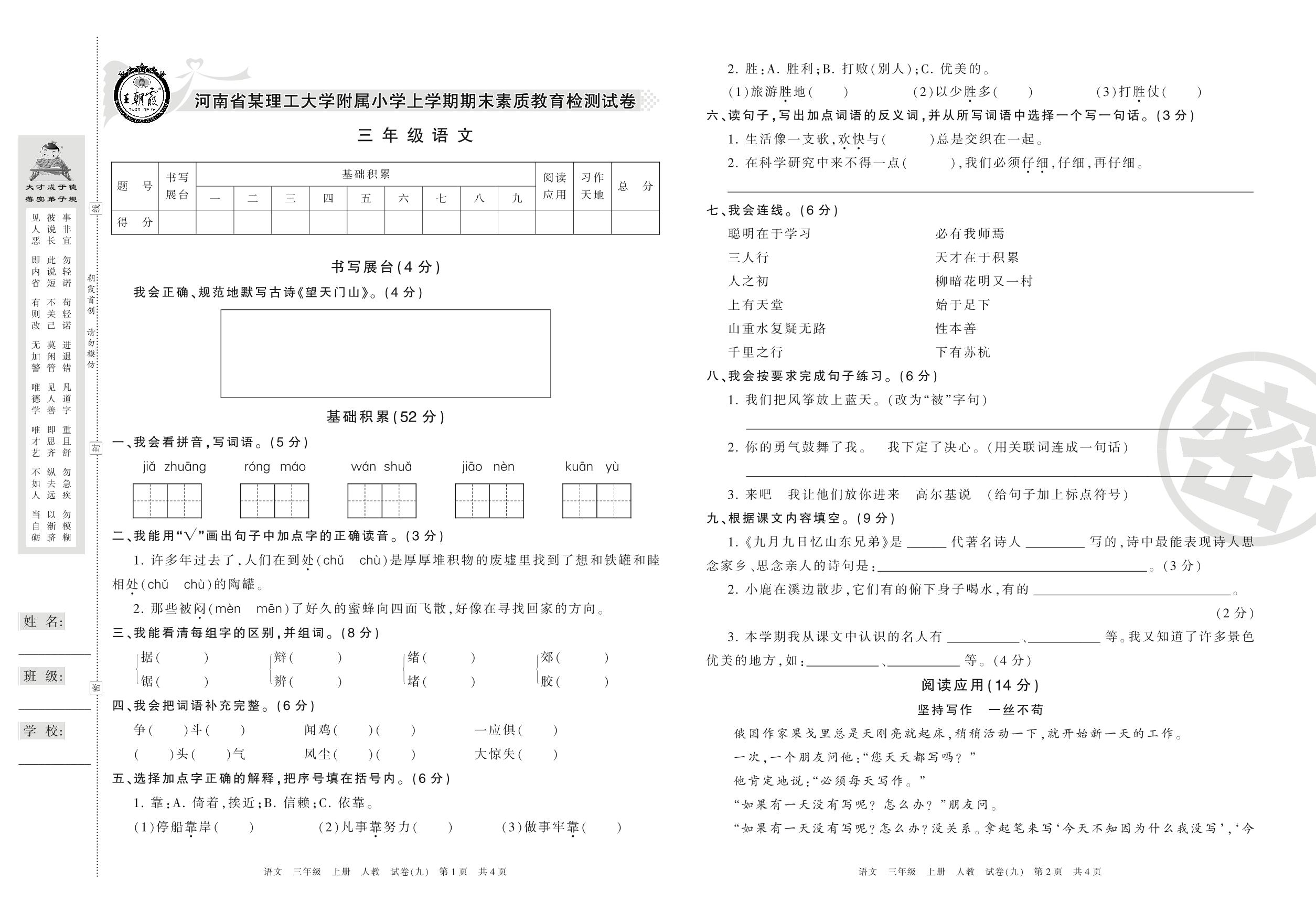 河南省某理工大学附属小学三年级上册语文(人教版)【9】