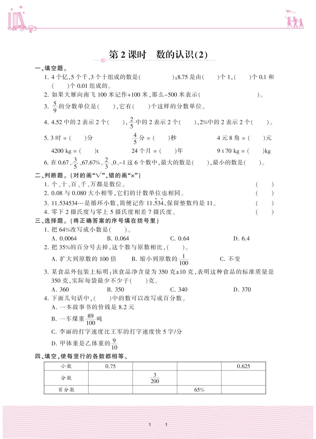 2021下册六年级数学人教版 6 整理和复习 1. 数与代数——第2课时 数的认识(2)