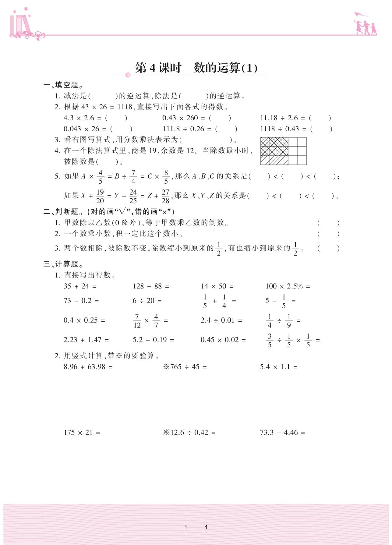 2021下册六年级数学人教版 6 整理和复习 1. 数与代数——第4课时 数的运算(1)