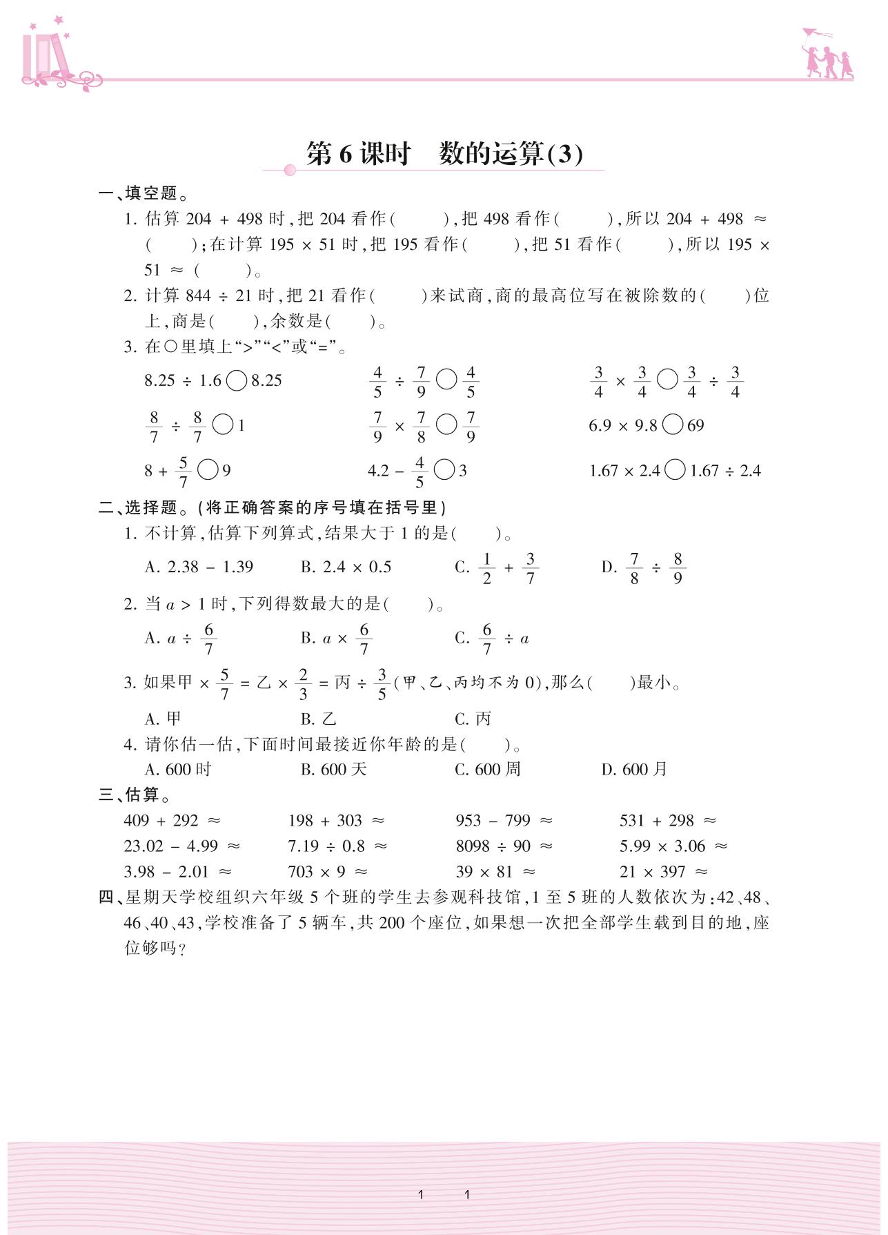 2021下册六年级数学人教版 6 整理和复习 1. 数与代数——第6课时 数的运算(3)