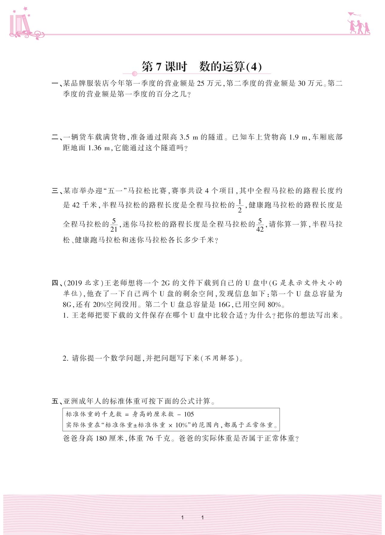 2021下册六年级数学人教版 6 整理和复习 1. 数与代数——第7课时 数的运算(4)