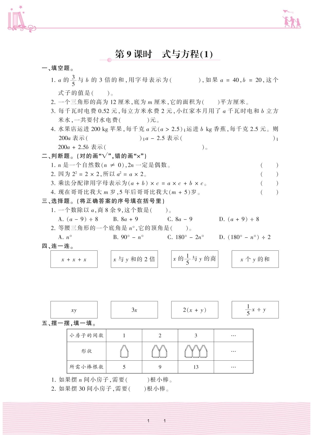 2021下册六年级数学人教版 6 整理和复习 1. 数与代数——第9课时 式与方程(1)
