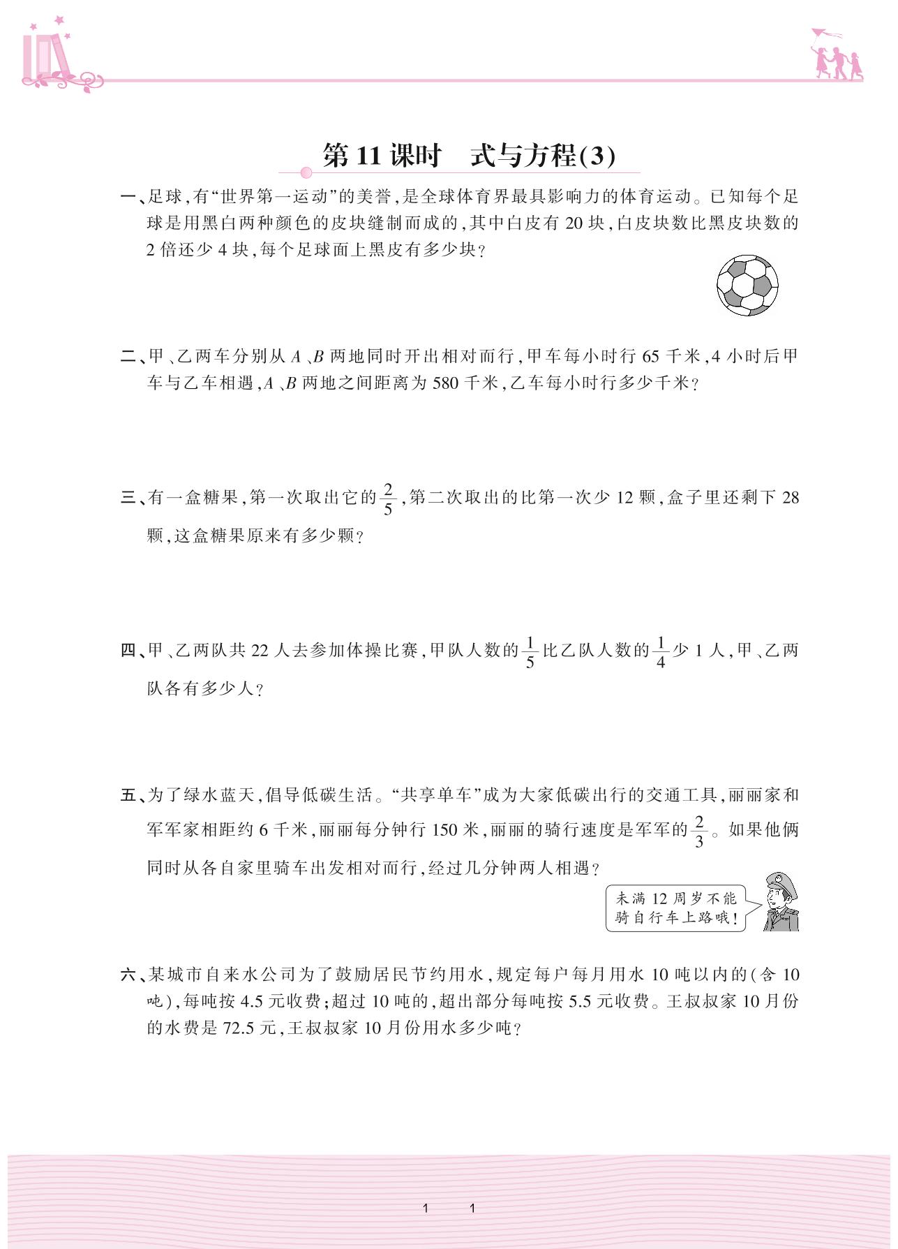 2021下册六年级数学人教版 6 整理和复习 1. 数与代数——第11课时 式与方程(3)