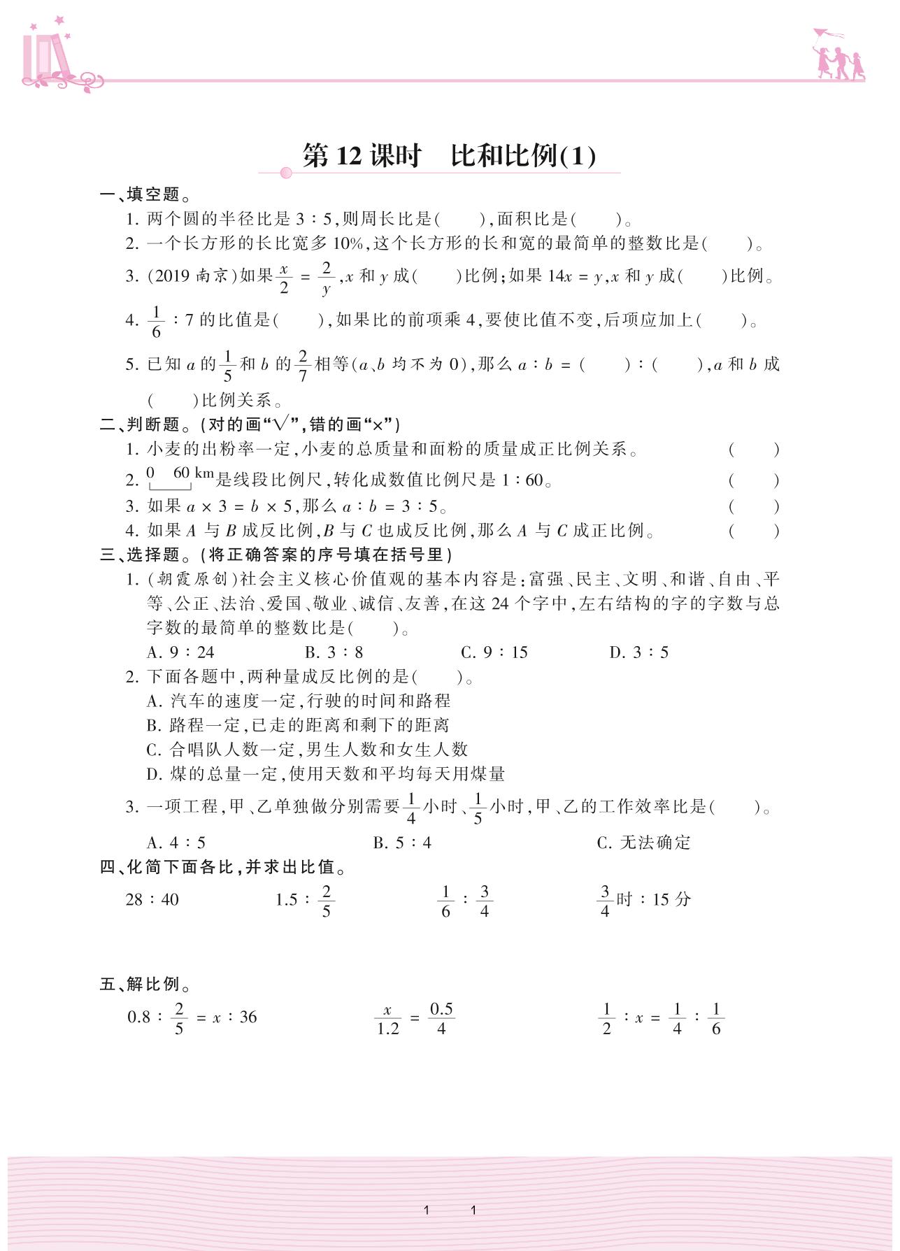 2021下册六年级数学人教版 6 整理和复习 1. 数与代数——第12课时 比和比例(1)