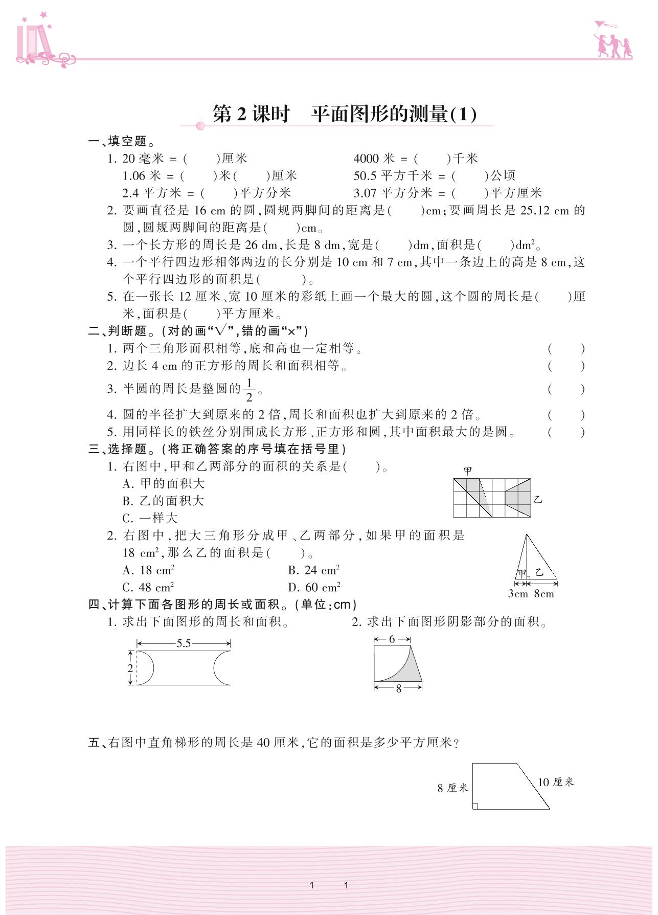 2021下册六年级数学人教版 6 整理和复习 2. 图形与几何——第2课时 平面图形的测量(1)