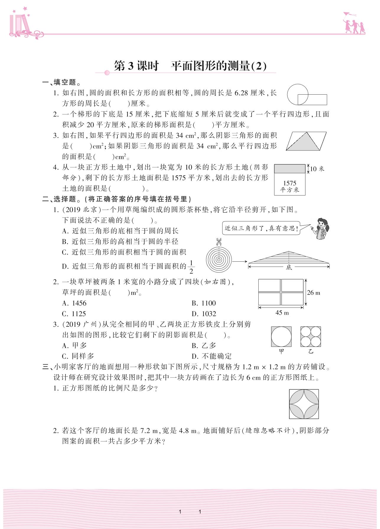 2021下册六年级数学人教版 6 整理和复习 2. 图形与几何——第3课时 平面图形的测量(2)