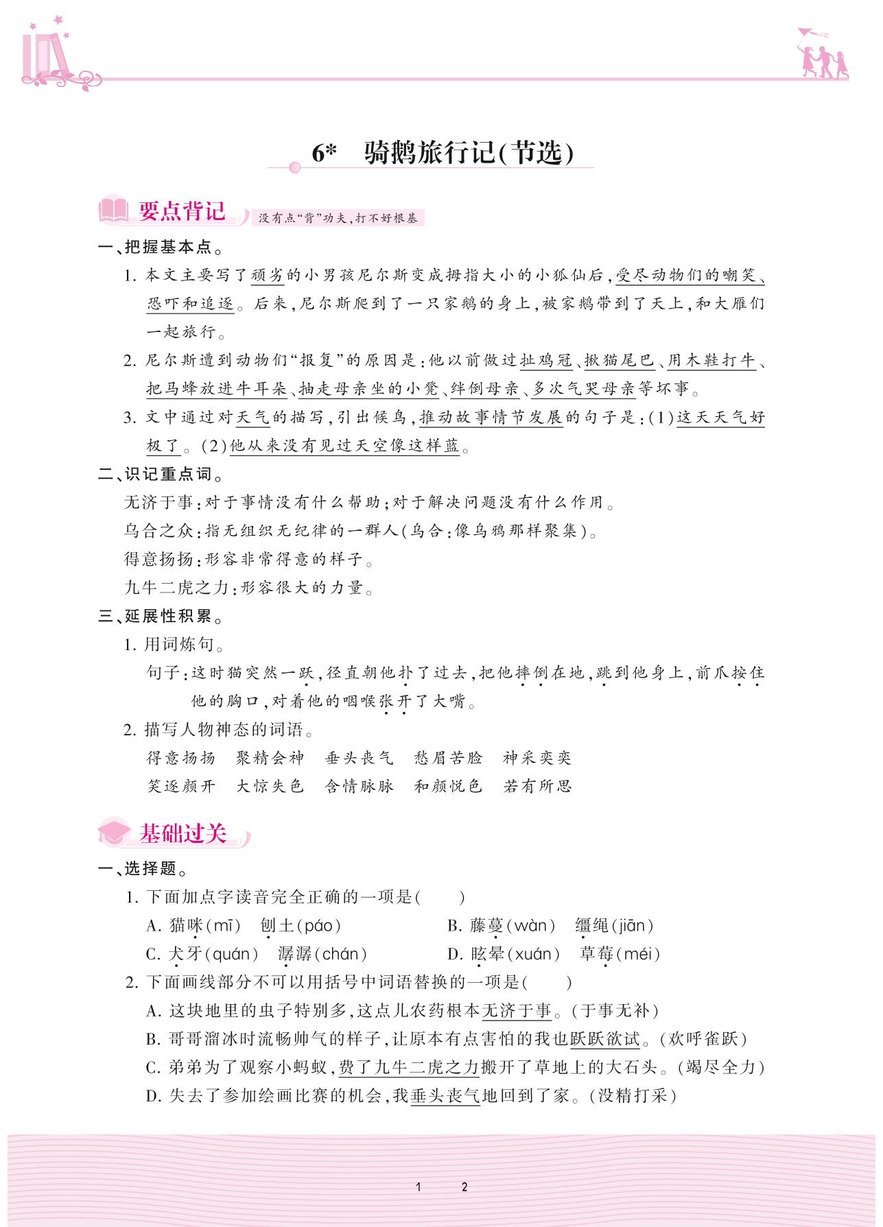 2021下册六年级语文人教版 第二单元——6 骑鹅旅行记(节选)