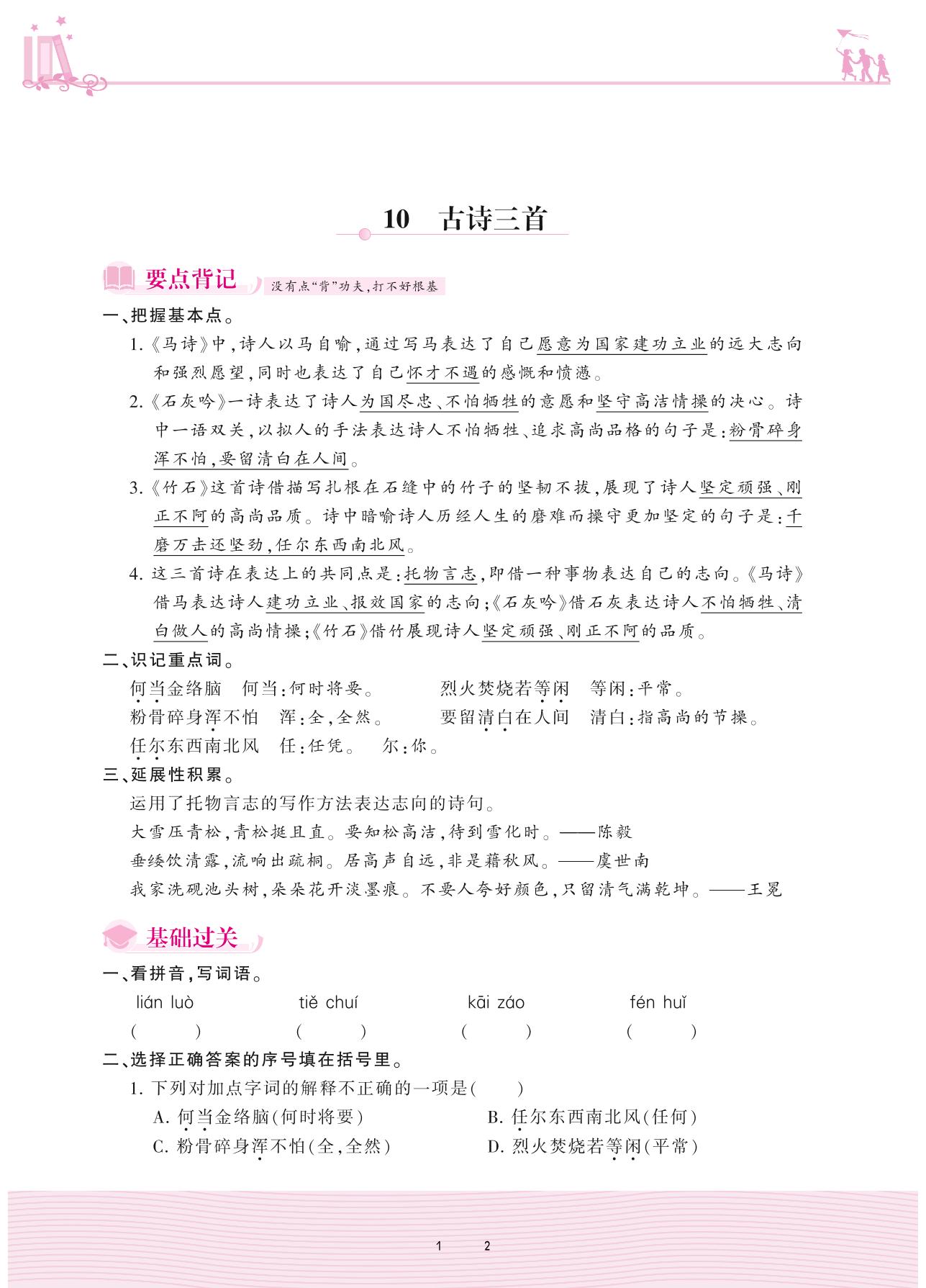 2021下册六年级语文人教版 第四单元——10 古诗三首