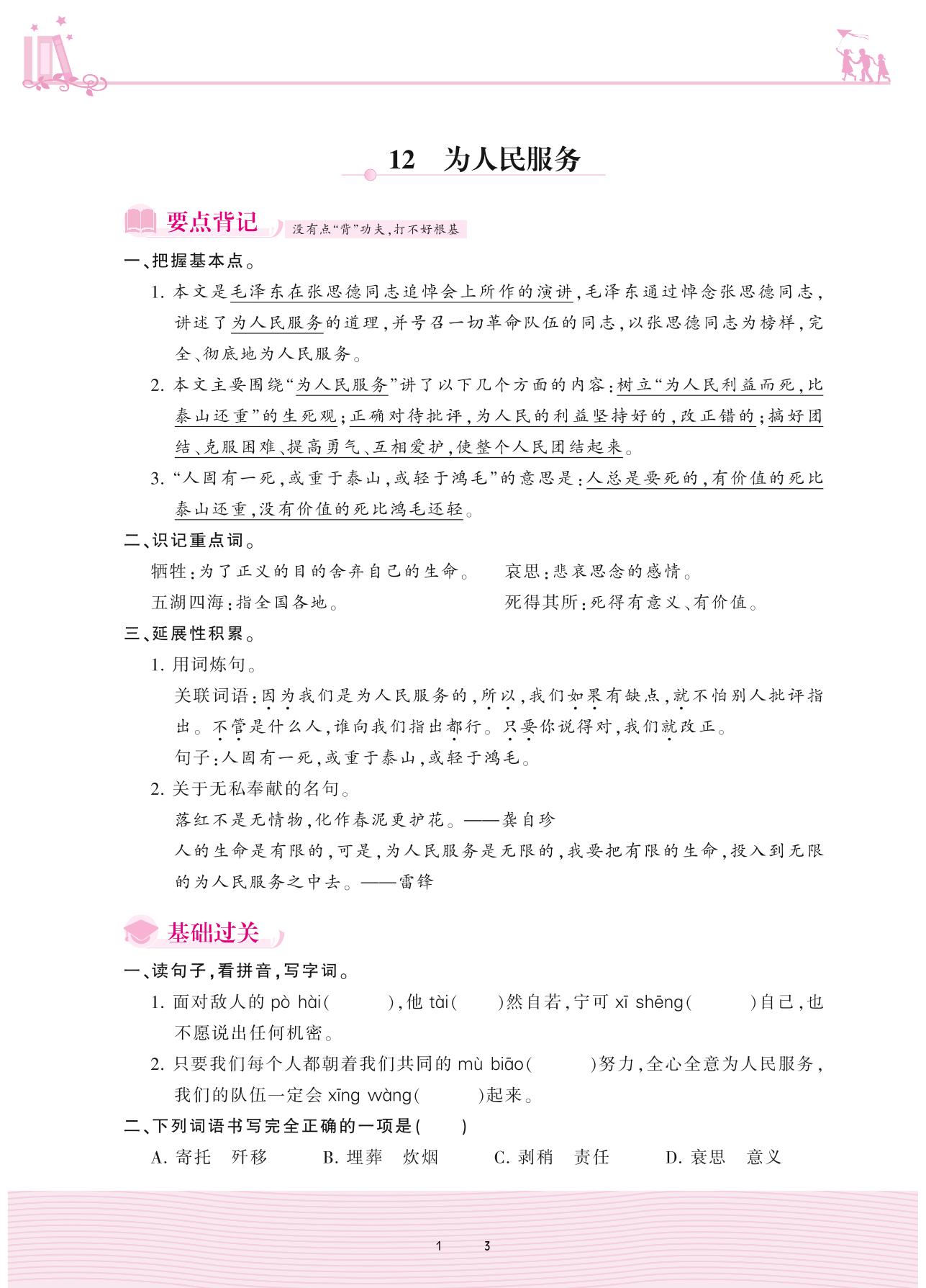 2021下册六年级语文人教版 第四单元——12 为人民服务