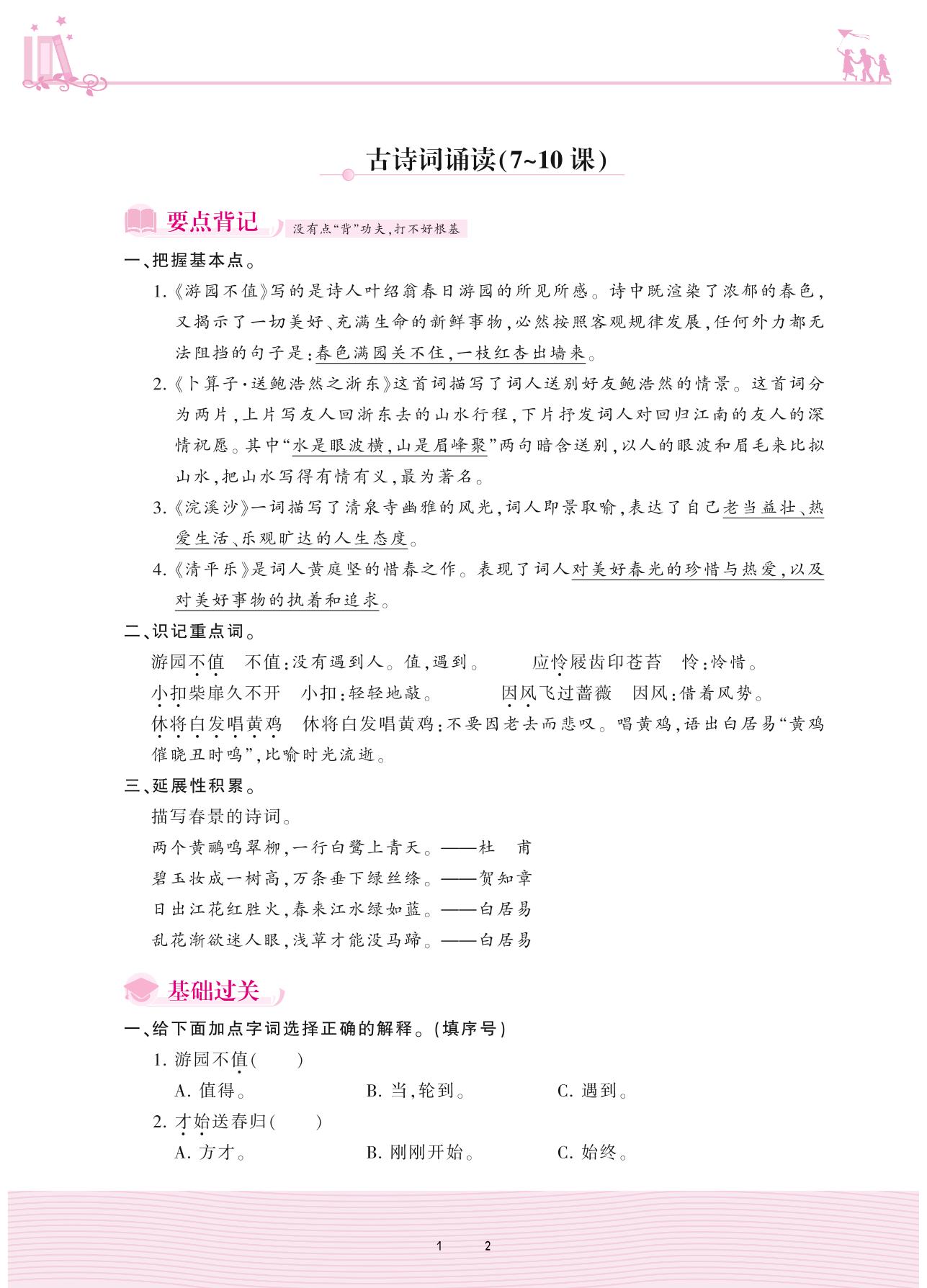 2021下册六年级语文人教版 古诗词诵读单元——古诗词诵读(7~10课)