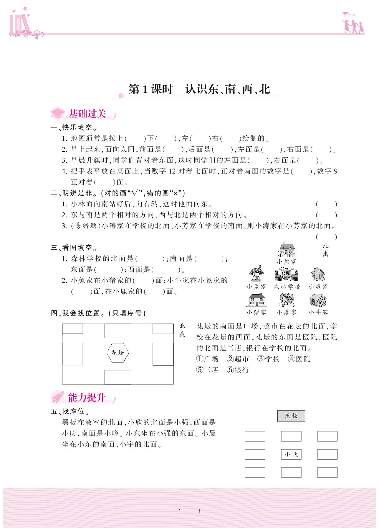 2021下册三年级数学人教版 1 位置与方向(一)——第1课时 认识东、南、西、北