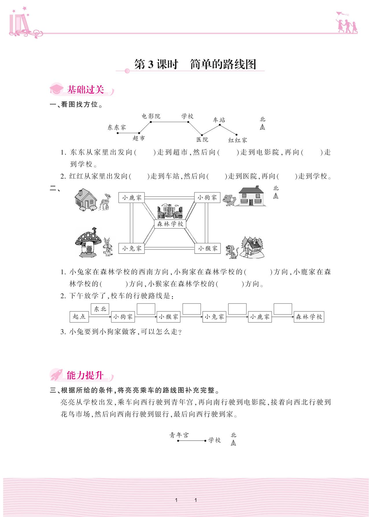 2021下册三年级数学人教版 1 位置与方向(一)——第3课时 简单的路线图