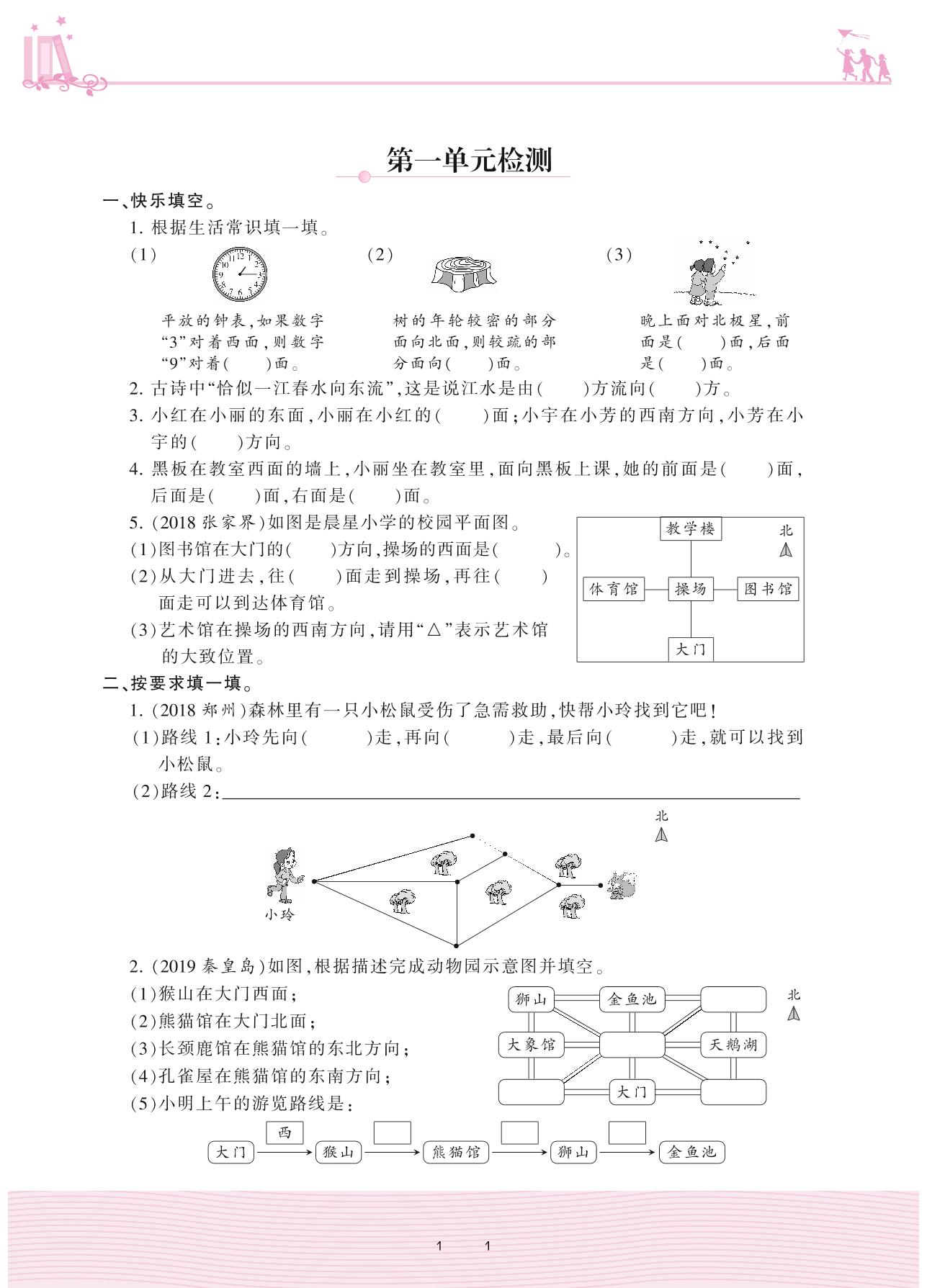 2021下册三年级数学人教版 1 位置与方向(一)——第一单元检测