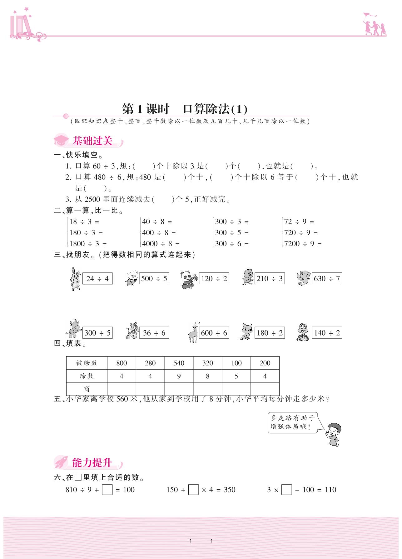 2021下册三年级数学人教版 2 除数是一位数的除法 1. 口算除法——第1课时 口算除法(1)