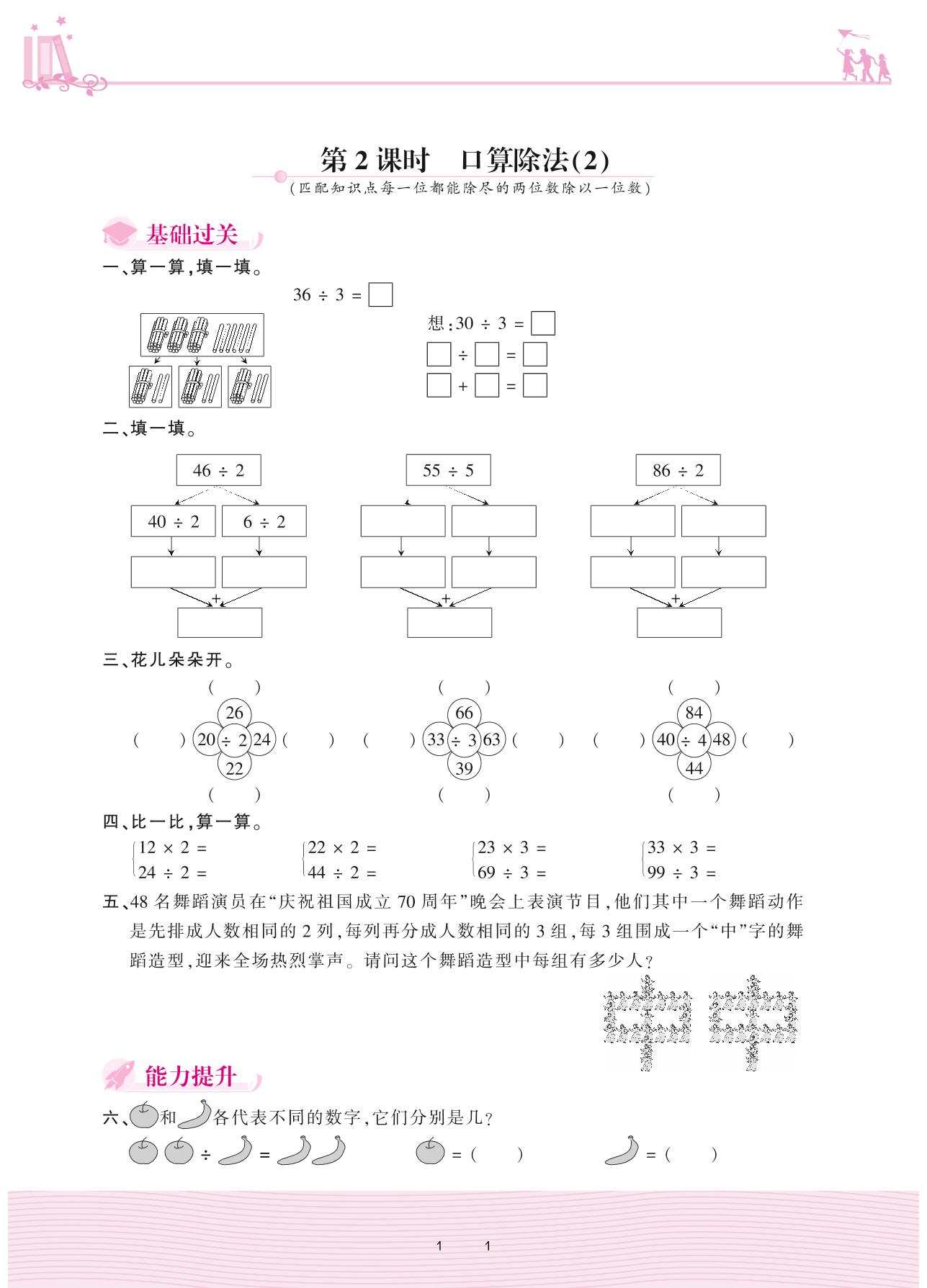 2021下册三年级数学人教版 2 除数是一位数的除法 1. 口算除法——第2课时 口算除法(2)